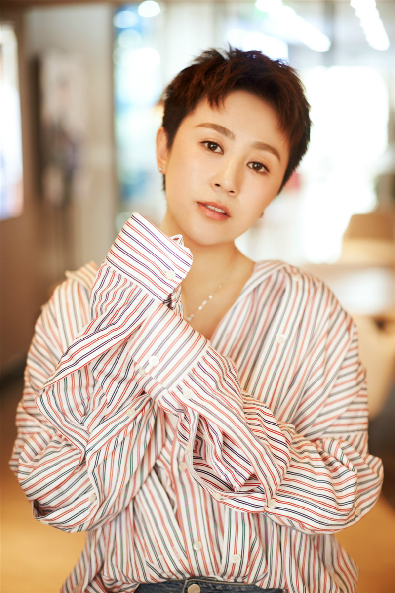 ? 近日,馬麗夏日寫真曝光。豎條紋oversize襯衫搭配簡單牛仔褲,清爽感十足。(文/楊靜)