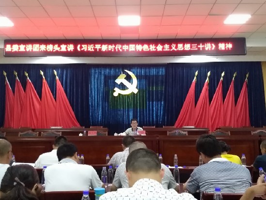 7月19日下午,仙游縣委宣講團成員、縣委宣傳部副部長、縣社科聯主席黃朝陽來榜頭鎮宣講《習近平新時代中國特色社會主義思想三十講》。榜頭鎮黨委書記蔣慶和主持,全鎮干部職工、鎮直鎮辦負責人和各村(居)主干、文書聆聽宣講。