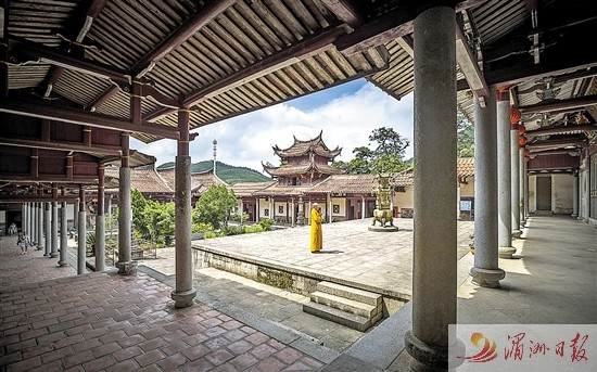 龜山寺內(nèi)雅致清幽 ?炎熱的夏天,逃離城市的喧囂,尋覓古剎的靜謐,似乎成了最“治愈”的方式之一。從市區(qū)出發(fā),經(jīng)高速公路莆田西出口鳳凰加油站旁的山路向上,再沿著天龜線旅游公路前行,大約15公里處,掩映在綠蔭之間的龜山寺,像是一位隱者,歷經(jīng)千載沉浮,等待一個(gè)又一個(gè)有緣人。 ■“龜洋積霧”美如畫 華亭鎮(zhèn)西北部海拔750多米的龜洋山上,峰巒重疊,嵐霧彌漫,自古就有“龜洋積霧”之稱,這也是莆田新二十四景之一。龜山寺位于原莆田二十四景之一“三紫凌云”的三紫山頂,龜洋山上,其依北面南,迎面是一列如屏的幾座小山峰,左為筆筒峰,右為筆架山。 走近龜山寺,如臨詩(shī)畫之中。聽(tīng)禪院鐘聲入耳,擁青山綠水入懷。它就這樣靜靜地沐浴在陽(yáng)光下,云掩山遮,涼風(fēng)推窗,半掩半敞的寺門,紅色院墻與藍(lán)天青山相映襯。 “龜山福清寺是莆田四大叢林之ー,俗稱龜山寺。”市文物局局長(zhǎng)連金焰介紹,該寺創(chuàng)建于唐長(zhǎng)慶二年(822),迄今已有一千多年的悠久歷史,是我市重點(diǎn)文物保護(hù)單位。現(xiàn)存的建筑物為清光緒三十年(1904年)重建,奇峰繞峙、列岫爭(zhēng)聳、松林疊翠、泉聲如弦,是古剎四大景觀。 一彎荷塘映襯素雅的古剎,歷史仿若在這里凝固。寺前正中的空地上,豎立著一排雕藝精巧的塔林,共有七座整齊地排列著,每座塔高約有5米,隔著寺前荷塘,與遠(yuǎn)處的山峰遙遙相對(duì)。寺院廣場(chǎng)上的一排石龜威嚴(yán)肅穆,十幾只龜形狀各異,雕工精湛,栩栩如生,似在守護(hù)著這座千年古剎。 目前,龜山寺正在進(jìn)行全寺翻修。現(xiàn)場(chǎng)施工負(fù)責(zé)人鄒黎明告訴記者,龜山寺現(xiàn)占地面積共1萬(wàn)多平方米,大小殿堂三十多廳,僧房寮舍150多間,組成錯(cuò)落有序、莊嚴(yán)別致的龜洋大剎建筑群。 “沿著大剎中軸線共有三進(jìn),龜山寺沒(méi)有建立山門,第一進(jìn)就是象征著山門的天王殿。”鄒黎明介紹,這座天王殿最大的特色是雄偉古樸的面墻,全用優(yōu)質(zhì)的青方石建成,因?yàn)槟サ霉饣珑R,幾乎看不出所有塊石之間接合的痕跡,好像是用一整塊巨石雕刻而成的。 記者注意到,天王殿高度10米許,包括兩邊“護(hù)厝”共有近600平方米。全墻詩(shī)偈以禪凈、農(nóng)禪結(jié)合為主要內(nèi)容,比如“菩提本無(wú)樹(shù),真境當(dāng)前悟”“一鋤一聲佛,吾心有凈土”等。 走過(guò)天王殿,正中是130多平方米的放生池。放生池的水倒映著兩側(cè)的鐘樓和鼓樓,翹首的檐角伸向藍(lán)天,偶爾的幾聲鳥(niǎo)鳴劃破沉寂的氛圍。與放生池毗鄰的,是一個(gè)宋造的大石槽,石槽里種植的荷花亭亭玉立。“上面刻著‘水供眾食’的字樣”。龜山寺住持釋禪嚴(yán)雙手撫過(guò)古樸的石槽介紹,石槽由整塊石頭鑿就,蓄水量巨大,是宋之佑四年(1089)院主僧道存造為廚房蓄水所用,可見(jiàn)當(dāng)時(shí)住寺僧眾之多。 ■廢興沉浮禪在心 “龜山寺的發(fā)展史,可以說(shuō)是一部濃縮的莆陽(yáng)佛教廢興沉浮史。”釋禪嚴(yán)說(shuō),龜山古剎初名“龜洋庵”,因遭唐會(huì)昌五年(845年)滅佛之厄,開(kāi)山祖師無(wú)了禪師隱于俗塵。大中元年(847年)唐宣宗恢復(fù)佛教,無(wú)了禪師與徒眾相繼回寺,他修心不修表,回寺后帶發(fā)參禪,領(lǐng)眾斂資修寺,寺院不斷擴(kuò)大,命名“龜洋靈感禪院”,住寺僧眾達(dá)500多人。 鄒黎明感慨,在只有羊腸小道的漫長(zhǎng)年代,草木封山,蛇獸攔路,一磚一瓦一石一木,包括重逾千斤的大石槽,無(wú)一不是從山下肩挑手抬,一步一步上到山寺的。于是便有了“唐井吐杉”與“鴨母乙運(yùn)石上山”等建寺傳說(shuō)。 龜山寺漫山遍野都是森林草木,沒(méi)有可用作建筑的石料。但寺內(nèi)所用石料出自何處,怎樣運(yùn)上山?釋禪嚴(yán)說(shuō),現(xiàn)存古代大小石料,都有當(dāng)年刻記的一個(gè)“乙”字,有的已經(jīng)看不清了,有的還清晰可見(jiàn)。這個(gè)字莆仙方言稱“鴨母乙”,相傳當(dāng)年無(wú)了祖師在外地購(gòu)?fù)晁枋希繅K都用“一指禪功”寫上“乙”字,再運(yùn)用佛力妙法,使所有石料都化成鴨子,驅(qū)趕上山。 在大雄寶殿左后角有一口水井,是無(wú)了禪師開(kāi)山建寺之前挖掘的“龜泉井”,后稱為“唐井”。不管是連日暴雨或久旱不霖,井水不漲不退。因此,千百年來(lái)寺中的僧伽們,流傳著“大旱十年,唐井不干”和“洪水為殃,唐井不漲”的諺語(yǔ)。 釋禪嚴(yán)介紹,傳說(shuō)無(wú)了祖師當(dāng)年往山里購(gòu)杉木,找到一個(gè)巨富,提出要買“無(wú)尾杉”。財(cái)主聽(tīng)后竟稱“任樂(lè)漫山自找,如有無(wú)尾杉,不取分文,全部砍去。”雙方立字為據(jù)。當(dāng)夜無(wú)了祖師入定,請(qǐng)伽藍(lán)護(hù)法相助,連夜砍斷全山大杉之末。次日上山察看,財(cái)主驚若木雞,知道有佛力相助,欲悔不能,慨然應(yīng)允。無(wú)了祖師又求諸佛法力相助,將漫山無(wú)尾大杉搬往大溪邊岸,順?biāo)鳎倩佚斞螅谔凭吥罘鹑攵ǎ瑹o(wú)尾大杉連接不斷地從唐井里吐出,直到龜山建寺完畢。有一僧人高喊“夠了!”無(wú)了醒來(lái),井里杉木即停止不吐,只剩下一棵杉木埋在井中,半截露出井口。 咸道八年(867),無(wú)了祖師圓寂,徒眾為他建殿造塔。多年之后,塔被山洪沖