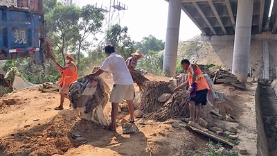 為守護(hù)一方綠水青山,連日來,榜頭鎮(zhèn)組織鎮(zhèn)村干部,并廣泛發(fā)動(dòng)群眾,開展木蘭溪流域農(nóng)村生活垃圾整治行動(dòng)為契機(jī),也掀起了一陣全民共建美麗鄉(xiāng)村的熱潮。 ?為此,該鎮(zhèn)特地召開木蘭溪流域沿線環(huán)境衛(wèi)生治理專項(xiàng)會(huì)議,要求分管領(lǐng)導(dǎo)、包村干部,村兩委主干全員行動(dòng)起來,組織人力物力,全力開展木蘭溪流域沿線環(huán)境衛(wèi)生整治。 ?記者現(xiàn)場(chǎng)看到,伴隨著挖掘機(jī)的轟鳴,成堆的垃圾、淤泥從河灘上被清理,裝車運(yùn)走(如圖)。河道中,干部群眾拿著鐵揪等工具鏟淤泥、撈垃圾、清雜草,還對(duì)排查出來的沿岸畜禽養(yǎng)殖場(chǎng)進(jìn)行拆除。該鎮(zhèn)組織衛(wèi)生保潔員、村居志愿者,對(duì)木蘭溪沿線村居主要干道進(jìn)行清整,集中清掃路面,清理雜草、雜物等。同時(shí),榜頭鎮(zhèn)黨員志愿者主動(dòng)走上街頭,開展以“關(guān)愛環(huán)境”為宣傳活動(dòng),引導(dǎo)村民自覺維護(hù)鎮(zhèn)村環(huán)境。 ?在全鎮(zhèn)上下一致努力下,短短的一周時(shí)間里,共組織人員110人次、出動(dòng)機(jī)械車輛23部,拆除沿線破舊雞鴨舍、亂搭建20余處,清理河道2000余米,清運(yùn)垃圾60余噸,木蘭溪沿線環(huán)境面貌煥然一新。 |