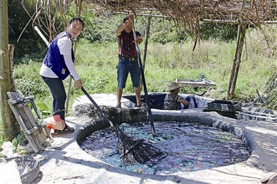 過濾 天高云遠,秋日里的晚風拂過,低頭又一次遇見馬蘭草。 這種看似不起眼的植物,很少年輕人識得,甚至都沒有聽說過。事實上,馬蘭廣泛種植于我縣書峰鄉四黃村,從它身上提煉加工制成的干燥粉末或者團塊,是聞名全省的“四大建字號”名優地道藥材之一,質量居全國同類產品之冠,具有較高的藥用價值,被稱為“建青黛”。 我縣建青黛的生產歷史悠久,最早記載見于宋朝開寶25年,即1257年《仙溪志》的物產部,傳統提煉技法有800多年的歷史,而且使用的設備簡單,實用簡便,傳承至今。 青黛能做什么?在古代,除了藥用價值之外,還能作為衣物染料,也可以用來畫眉。如今,青黛是板蘭根的主要原料,藥用價值極高。 雖然四黃村境內,至今仍種植著約千畝馬蘭,但年輕勞力外出打拼,遇到采收提煉的時節,只有技藝嫻熟的老手藝人在忙碌。 特別澆筑的水泥池子一字排開,放入收割上來的馬蘭草,浸泡三天三夜后,撈出腐爛的枝葉,加入熟石灰。之后進入最重要的工序——打藍,用木棍在池子中不停地攪拌,直至池水的顏色由綠至褐再逐漸變藍。池面上淡藍色的泡沫就叫藍花,是馬蘭草浸泡液與熟石灰最先反應的物質,含藍色成分最高,為青黛中的上品。曬干之后上品的那抹藍色,如錦緞般純粹,閃爍著高貴迷人的光澤,見過就不會忘記。 撈完藍花,還要接著打制、攪拌近半小時,之后便是一個多小時的沉淀和過濾。將沉淀下來的黑藍色物質撈出,放入麻袋內,壓上大石排干水分,膏狀的青黛面世,再將其暴曬干透即可。 150公斤的馬蘭草,只能制成約17公斤的青黛成品。像所有的農業勞作一樣,這是一項繁復的體力活,要付出無數的汗水辛勞。但誰能說它,不值得呢。 |
