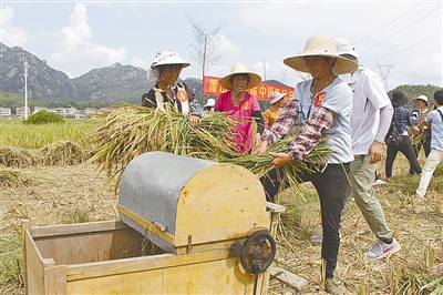 大豐收 在豐收的喜慶時節,全市歡慶首屆“中國農民豐收節”主會場活動,在鐘山鎮朗橋村舉行。市委書記林寶金,省農業廳副巡視員宋國林,副市長吳健明,縣領導鄭亞木、吳海端等來到朗橋,與農民共慶豐收節。 據悉,今年6月21日,經黨中央批準、國務院批復,自2018年起,將每年秋分日設立為“中國農民豐收節”。9月23日是第一個“中國農民豐收節”,莆田市首屆“中國農民豐收節”由市農業局、縣委縣政府主辦,主會場設在鐘山鎮朗橋村,同時在各縣區設立分會場。 據了解,朗橋村依托原生態山水田園風光,全力推進田園綜合體試點項目,力爭打造鄉村振興典范。截至目前,已對800余畝土地進行升級改造,建設由稻田藝術、植物迷宮、四季花海、特色瓜果、蘑菇部落、環田慢道等組成的創意休閑田園。 此次主會場活動主題為“振興鄉村、美麗莆田”,活動內容包括一個慶豐收主會場和特色農產品展示區、名優農副產品展銷區、閩臺特色美食區、農事體驗區等四個特色展示區。 活動在開場舞表演《大鼓慶豐收》節目中拉開帷幕。隨后舉行了水稻收割開鐮儀式,慶祝豐收,祈愿來年風調雨順、五谷豐登。 在慶豐收文藝演出中,《荔枝紅了》、《海峽同樂》、《在希望的田野上》等群眾喜聞樂見的節目一一上演,人們用載歌載舞的方式抒發豐收的喜悅。精彩節目中,還穿插了許多歡快的比賽環節,有揮鐮割稻、稻田大力士、人工神杠秤等比賽,農味十足、妙趣橫生,充滿田園風情。 |