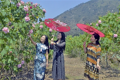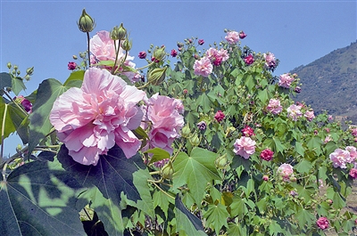制作花茶 “莫怕秋無伴醉物,水蓮花盡木蓮開。”唐代詩人白居易的詩句,說的是百花凋謝,木芙蓉卻凌霜綻放。這不,在鯉城街道來洋社區的百畝桂園,4000余株木芙蓉花花開正艷、美不勝收,吸引了一批批游客慕名前來觀賞游玩。 10月10日上午,記者來到離城區不到3公里的桂園,只見大片木芙蓉已經盛放,爛如錦、絢爛如霞,分外妖嬈,描繪出一幅絢爛的城郊畫卷。不少游客看到這美景,紛紛與木芙蓉零距離接觸,駐足欣賞、合影留念。 “看朋友圈里有人發這里的風景照,就過來逛逛,真是不虛此行。”前來游玩的李忠勤女士一邊忙著拍照,一邊笑著告訴記者。難得郊區還有這么一處賞花的好地方,她趁著秋色正好,約了三五友人一起過來玩。 據了解,木芙蓉,又稱芙蓉花、拒霜花和木蓮等,屬錦葵科,木槿屬落葉大灌木。花朵有單瓣和重瓣,花瓣可食用和藥用。花形似牡丹,凌霜綻放,極為美觀。中國是木芙蓉的故鄉,除東北、西北等寒冷地區外,其他地區均有分布,它還是成都市花。 “首批初花9月底開放,目前已進入繁花期,花期可以持續三個月,每天都有近百人前來賞花。”桂園管理員吳建新告訴記者,他正帶著工人,采集殘花,置于陽光下暴曬。他說,木芙蓉不僅能夠觀賞,還能將花采下制茶,有清熱解毒的功效。此外,花莖、花葉都可以用于提煉中藥材。 記者了解到,這片名為桂園的中藥材種植基地,去年6月竣工投用,以園內種植1萬余株丹桂而得名。基地負責人吳建明介紹,桂園一期共投資2000余萬元,在林間套種36 種中藥材以及各種花木,不但有我縣名貴品種黃梔子、白花益母草、麥冬等,還有從山西引進的鈣果,臺灣引進的木芙蓉、長果桑,丹麥引進的檸檬,日本引進的七號薄荷,以及省農科院優品金銀花、金桔等。此外,單是花卉就有桂花、櫻花、木芙蓉、茶花、桃花、荷花、玉蘭、梔子花等,一年四季都可以欣賞繽紛花色,成為市民郊游賞花的好去處。 |
