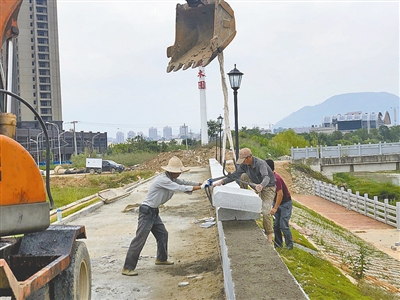 移步換景 秋季降雨量相對(duì)較少,便于施工作業(yè)。連日來(lái),在木蘭溪防洪生態(tài)景觀工程仙榜段柴橋頭溪(瑞溪)C8標(biāo)工程現(xiàn)場(chǎng),工人們搶抓施工黃金期,加速度沖刺掃尾,預(yù)計(jì)將于11月份完成全部工程量。 據(jù)介紹,木蘭溪防洪生態(tài)景觀工程仙榜段柴橋頭溪(瑞溪)總長(zhǎng)20公里,起點(diǎn)園莊鎮(zhèn)東石村,終點(diǎn)鯉南鎮(zhèn)玉塔村,分為C4標(biāo)、C8標(biāo)兩個(gè)標(biāo)段。其中,C4標(biāo)工程位于城區(qū)瑞溪匯合口至永鴻小學(xué)之間地段,建設(shè)防洪堤岸總長(zhǎng)2.5公里,于去年7月28日完工并投用。C8標(biāo)(含柴橋頭溪小流域綜合治理防洪生態(tài)水系)工程位于木蘭溪支流柴橋頭溪(瑞溪),建設(shè)堤防總長(zhǎng)3480.95米,起點(diǎn)為楓林寺橋,終點(diǎn)為東埔橋。該工程于今年1月30日動(dòng)工,分成楓林寺橋至柴橋頭橋、柴橋頭橋至坂頭橋、科山橋至東埔橋等三段,同步進(jìn)行施工。 近日,記者在科山橋至東埔橋段施工現(xiàn)場(chǎng)看到,工人們正在大型鉤機(jī)的配合下,鋪設(shè)防浪墻磚,時(shí)而用手中的量尺衡量水平線,時(shí)而敲打修正磚塊。在柴橋頭橋至坂頭橋段,工人們正在進(jìn)行路面鋪磚,記者看到,廣場(chǎng)上綠樹(shù)成蔭,秋風(fēng)拂過(guò),樹(shù)梢輕晃,一兩棵美人蕉、一兩株三角梅已悄然開(kāi)花,雖然花開(kāi)得有點(diǎn)零星,但一眼就能把你吸引住。 據(jù)項(xiàng)目現(xiàn)場(chǎng)負(fù)責(zé)人介紹,至目前,三個(gè)分段工程的主體工程都已基本完成,累計(jì)完成投資約1550萬(wàn)元,占總投資額1945萬(wàn)元的80%。現(xiàn)在正在進(jìn)行防汛路澆筑、綠化種植、景觀平臺(tái)及步道鋪設(shè)等工作,把防洪工程標(biāo)準(zhǔn)提高至20年一遇。此次工程建設(shè)中,統(tǒng)籌考慮清淤截污、筑壩蓄水、綠化種植、景觀步游,結(jié)合我縣獨(dú)特的山水生態(tài)和歷史文化資源,打造歷史文化特色和綠色生態(tài)有機(jī)融合的生態(tài)景觀,逐步建成河暢、清水、岸綠、景美的木蘭溪濱水生態(tài)景觀帶 |