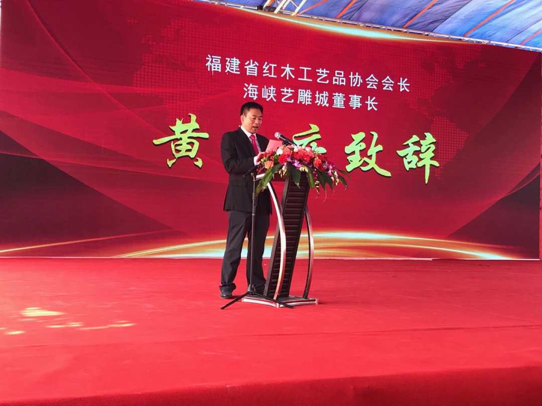 海峽藝雕城董事長黃元慶 開幕式上,原國務院稽查特派員、國資委國有企業監事會原主席、中國產業發展促進會副會長、中科院中國傳統文化和傳統工藝發展工程委員會副主任孟憲剛向仙游縣人民政府縣長吳國順授牌,特授予仙游縣“中國紅木家具質量提升創新縣”榮譽稱號。