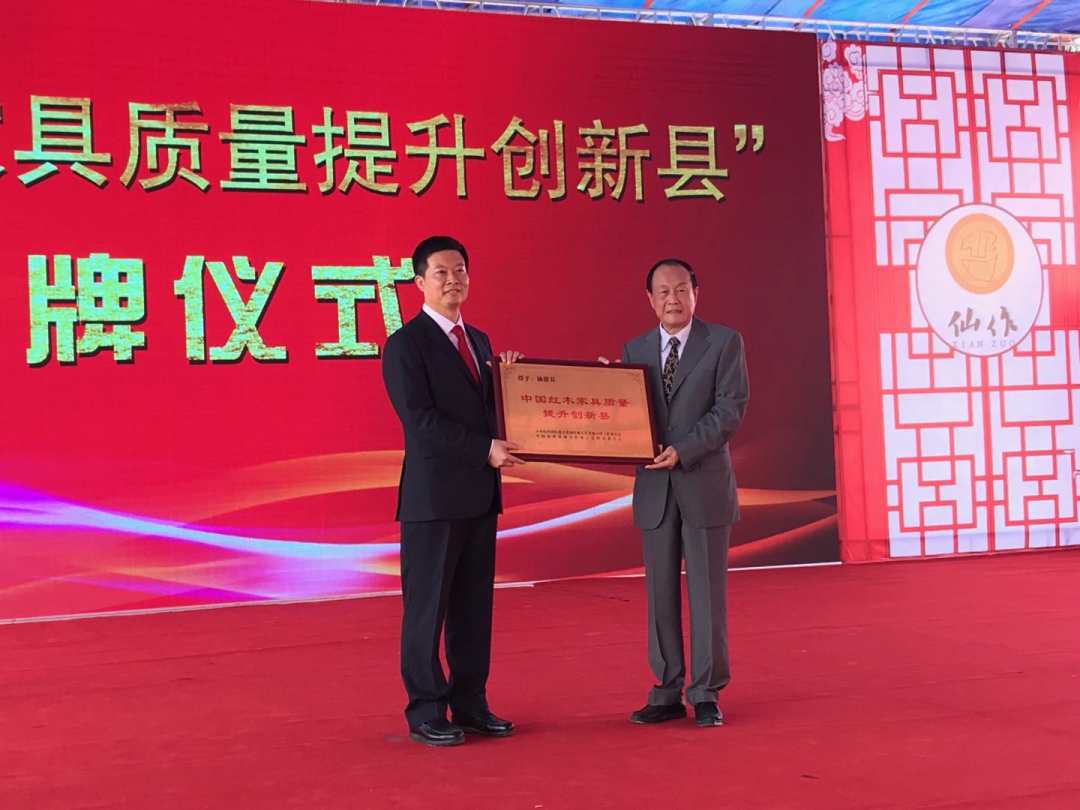 中國家具協會理事長徐祥楠 仙游縣委書記鄭亞木在開幕式致辭中說,仙游始終牢記習總書記的囑托,以質量品牌推動產業,以創新創造引領行業,以文化多元提升內涵,把仙作古典家具產業作為特色產業、富民產業全力扶持、培育壯大;始終秉承“辦好一場活動、帶動一個產業、提升一座城市”的理念,成功舉辦了五屆紅木博覽會,有力提升了仙游的影響力、知名度和美譽度。