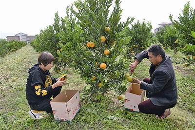“一年好景君須記,最是橙黃橘綠時(shí)。”眼下蘆柑進(jìn)入采摘時(shí)節(jié)。11月26日,在度尾鎮(zhèn)同欣生態(tài)采摘園里熱鬧非凡,該果園把一部分蘆柑采摘送外超市,一部分則通過微信朋友圈,讓城區(qū)等地游客到果園體驗(yàn)采摘游的樂趣。 走進(jìn)同欣生態(tài)采摘園,放眼望去,數(shù)千棵的蘆柑果樹上,滿掛著果實(shí),黃澄澄沉甸甸的果實(shí)掛滿枝頭,壓彎了樹枝,好生誘人。記者了解到,該采摘園有10余種柑橘類品種,大約有5000多株,從重慶引進(jìn)地就有8個(gè)品種。現(xiàn)在已經(jīng)進(jìn)入蘆柑采摘期,預(yù)計(jì)可以采摘到12月底,這些蘆柑除了供游客采摘外,大多數(shù)將銷售大附近城市的超市中。此外,采摘園還植桃子、芒果、百香果、蓮霧、樹葡萄、巴西櫻桃、火龍果、柑橘等水果近20個(gè)品種,基本形成了一年四季‘有花有綠,有蔭有果’的生態(tài)花園式風(fēng)格。 “度尾鎮(zhèn)一直都有種植蘆柑的歷史,而且得天獨(dú)厚的地理優(yōu)勢,使得這里的蘆柑個(gè)頭更加大,味道更加甘甜,在90年代就遠(yuǎn)銷東北、河南等多個(gè)省份。”該采摘園管理員林瑞火告訴記者,今年是這片蘆柑第一次掛果,遇上大年,開花的季節(jié)天氣晴好,掛果率非常高,為讓果樹能長得高大些,我們采取蔬果處理,這片土地生態(tài)環(huán)境優(yōu)良,日照時(shí)間長,又是紅土壤,非常適合蘆柑生長,如今,每個(gè)蘆柑個(gè)頭重達(dá)200余克,十分喜人,廣受客戶青睞。 在果園里,記者正好遇上榜頭鎮(zhèn)居民陳琦。“我們是通過微信朋友圈得知這里的蘆柑可以自己采摘,便來采一回。“陳琦與記者攀談起來,現(xiàn)在流行采摘游,特別是周末帶孩子來體驗(yàn)生活、親近大自然是一個(gè)不錯(cuò)的選擇。如今不用跑永春,就可以在仙游本地吃到正宗蘆柑;也可以來這里散散心,呼吸果園新鮮空氣,同時(shí)看看度尾鎮(zhèn)海峽藝雕成周邊景點(diǎn),自己動(dòng)手體驗(yàn)一把采摘樂趣,實(shí)屬過癮。從蘆柑采摘游,又延伸到農(nóng)家樂。 “周末來采摘多是拖家?guī)Э冢话闵衔鐏恚挛缱撸形缥绮驮趺唇鉀Q,于是我們就想到做農(nóng)家樂。”林瑞火說,果園周邊種不少蔬菜,游客可以在這里自己煮大鍋飯或者燒烤,體驗(yàn)回歸自然的感覺。 |