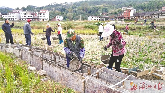 由省級財政投資104萬元的書峰鄉蘭石片高標準農田建設項目,涉及耕地650畝,建成后將大大提升蘭石村農田基礎設施水平。圖為新修灌溉水渠現場?!      ?/p>