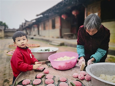 “君自故鄉(xiāng)來(lái),應(yīng)知故鄉(xiāng)事”,濃濃的鄉(xiāng)情伴隨著臘月年味兒,而顯得越發(fā)香醇暖馨。不知阿嫲的竹蒸籠里,是否躥出陣陣紅團(tuán)雞蕉葉的清香?遠(yuǎn)村炊煙暮靄里,落日的暖光是否映著老宅屋頂?shù)那嗵Γ哭r(nóng)家大院外,是否又響起誰(shuí)家老母呼喊兒孫乳名歸家的聲音? 在漸濃的年味里,市攝影家協(xié)會(huì)走進(jìn)蓋尾鎮(zhèn)前連村進(jìn)行民俗采風(fēng)活動(dòng)。一進(jìn)村口,撲面而來(lái)的便是久違的年的氣息。家家戶戶呼朋喚友,在張羅著制作紅團(tuán)的材料和工具。大娘大嬸們笑容滿面,家長(zhǎng)里短的邊聊著邊和著手中的面團(tuán)。新媳婦忙活著將煮熟的糯米盛進(jìn)盆里。幾個(gè)娃娃圍坐在桌前,饞望著,等待著紅團(tuán)早點(diǎn)兒成型,早點(diǎn)兒入籠。大爺默默地坐在老柴火灶邊,火苗滋滋作響映著他飽經(jīng)風(fēng)霜的臉。 現(xiàn)場(chǎng)“長(zhǎng)槍短炮”,“咔擦”聲響不斷,攝影師聚焦的不只是紅團(tuán)香甜的年味兒,也聚焦了故鄉(xiāng)親人對(duì)游子們歸家的呼喚。 |