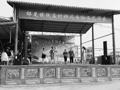 郊尾鎮紀委工作人員正在向群眾核查問題線索。 郊尾鎮紀委在全鎮各村(居)組織舉辦移風易俗文藝表演巡回演出。