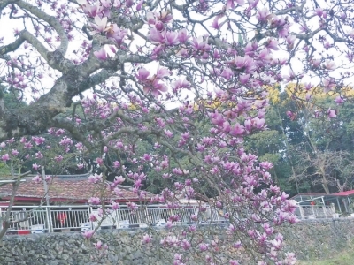 百年紫玉蘭守護千年古剎。