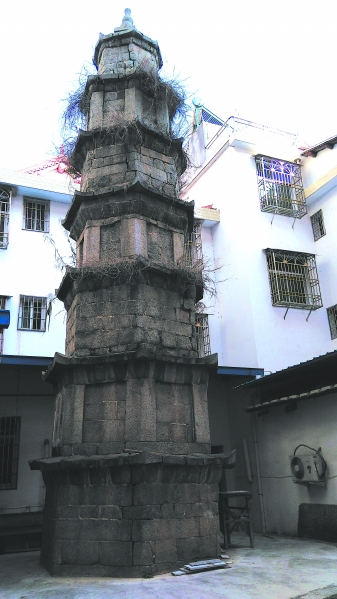 在仙游鯉中文體廣場前邊的巷子拐角處,有一座有著400余年歷史的雁塔,系仙游唯一隱于中心城區的古石塔。該塔為明代尚書鄭紀于明萬歷八年(1580年)倡建,曾是仙游古縣城的標志性建筑。 雁塔,斜對著我省四大文廟之一的仙游文廟,古代仙游讀書人考前考后,都要頂禮膜拜這座塔。塔為石構樓閣式,底座直徑約2米,塔高12.6米,體形癯瘦,塔形秀麗,由青石堆積而成,呈六角形七層實心結構,各層均有塔檐;塔身結構嚴實,無雕刻,僅在塔北面二層上刻有“雁塔”兩個大楷字,落款為“萬歷庚辰冬陽月吉旦日”;塔剎為葫蘆狀,整體保存完好。仙游雁塔名稱、外形,均源于締造了“雁塔題名與雁塔詩會”傳奇的西安大雁塔。 |