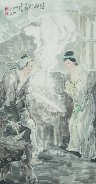 孫仁英作品《鑄劍圖》 在中國近現代美術史上,李耕與齊白石并稱“南李北齊”,并與李霞等開宗立派創立“仙游畫派”,同時開創了全國首例以在世藝術家名字命名設立的“李耕國畫研究所”。作為李耕晚年最近身的閉門弟子,他25歲時拜李耕為師,伴隨大師左右近5年,得其真諦而漸成為一位著名的古典人物畫家。他就是孫仁英。 孫仁英,1934年生于仙游。中國美術家協會會員、福建省文史館館員、仙游李耕國畫研究院名譽院長。 孫仁英師從我國古典人物畫大師李耕,承其衣缽,系李耕國畫藝術主要傳人之一。其創作的《竹林七賢》被國家永久性收藏,懸掛于人民大會堂;《女媧補天》《鑄劍圖》《高士》《桔頌》等近百幅作品先后參加由中國美術家協會、國家博物館、中央文史研究館、中國美術館、中國郵票博物館等單位舉辦的全國展覽并獲獎;出版有《孫仁英古典人物畫集》《當代實力派畫家:孫仁英作品專集》《中國美術家協會會員圖冊(孫仁英)》等。 緣起:摯愛藝術緣遇先生 孫仁英的曾祖父系道光年間欽賜文魁。本是書香門第,到了父輩,他們卻喜歡經商。獨獨孫仁英與眾不同,自幼偏喜歡畫畫。 小時候,孫仁英家住仙游龍星街(現二保街)。那時,隔壁是個牙醫店,孫仁英經常從牙醫店拿些廢棄的粉模,以買來的李霞畫冊和在許多店堂里看到的李耕作品為樣板,在街道上到處臨摹亂畫,或到當時城里一家叫“三明同興”的宣紙專賣店買來宣紙作畫。 15歲那年,孫仁英初中畢業。父親要他學做生意,他卻是一點興趣也沒有,依然喜歡畫畫和手工藝。 父親雖不情愿,但孫仁英自有他的“護身符”——在伯父的支持下,孫仁英得以棄商從藝,開始學做木工。 但業余時間,畫畫仍是孫仁英的心頭摯愛。 他堅持習畫,并經常向附近的老師請教。其間,得到多位老師的悉心指導和縣領導的關心關注。他經常應縣里邀請為有關部門創作各類宣傳畫和參加各種展覽活動,并開始向各級報刊投稿,作品經常被《福建日報》采用,多次入選全省美展。后又被縣工會推薦,先后到仙游縣公安局、晉江地區公安處和省公安廳負責宣傳工作。 其時,孫仁英仍不覺得自己已經叩開了通往美術界的大門。但作品屢受肯定,還是讓這位清瘦的青年愈發斬不斷自己的藝術情愫。 1959年,為繼承、發掘、搶救和整理李耕的傳統國畫藝術,省里決定成立“李耕國畫研究所”。同時,要選拔2位國畫基礎較好的青年跟隨李耕學習,繼承他的傳統國畫技法??h里首先確定要調進時任仙游師范學校美術教師的陳毓和,陳毓和又向上極力推薦當時正在省公安廳工作的孫仁英。 “聽到縣里要調我去跟李耕先生學習國畫的時候,我心里十分高興,毫不猶豫答應了下來?!狈艞壢巳肆w慕的公務員身份,近身學藝當“學徒”,這個在當時很多人看來甚是艱難的抉擇,卻是孫仁英夢寐以求的機緣。 他與李耕的師徒情誼,以及他的藝術成長之路,也是從這一個堅定的點頭開始的。 承志:得其真諦漸成名家 孫仁英現居于仙游八二五大街的一處小巷,在其二樓畫室的畫案前,一直擺放著其恩師李耕的照片。已屆耄耋之年,孫仁英依然以其旺盛的精力和高昂的創作激情活躍于中國畫壇,這與他和李耕的師徒往事分不開。 李耕國畫研究所剛成立時,設在仙游縣文化館辦公的祠堂內。作為百里挑一被選調進研究所的弟子,組織上讓孫仁英跟隨李耕習畫的同時,還要負責李耕的日常和生活用度。為此,他經常陪伴李耕左右,備受李耕的關心和器重,也最能深刻領悟李耕“初學畫,效先賢,嚴法度?;A既奠,要重觀察,創新意,求于有法處變無法,力圖不落前人窠臼”的道理。 李耕的畫作筆力酣暢、氣勢雄健,要學習他的傳統國畫藝術,須先學好他的工筆畫。但彼時李耕已年屆古稀,藝術也進入至高境界,平時創作的作品,大多是半工寫和大寫意,很少畫工筆。盡管孫仁英早有美術功底,跟隨李耕學畫后,畫藝也大有長進,作品經常被推薦參加全國、省、市大展并頻頻獲獎,但各方領導的關心和關注,還是令他感到壓力很大,唯恐自己跟不上、學不好。 “不想繼續學,想離開研究所”的念頭開始在他心頭盤旋,并不時流露出來。不知誰把消息傳到李耕那里,一天,李耕特地走到孫仁英身邊坐下,對他說:“仁英,我告訴你,你就按現在的畫法堅持畫下去,工筆慢慢再學,詩詞方面我也會教你。你會有所成就的?!?/p> 李耕的一席話,留住了孫仁英,也成就了孫仁英。 此后,孫仁英不僅跟隨李耕刻苦習畫,同時遵循恩師的教導,大量研習前人作品、大師畫論以及傳統藝術文化,取其精華,觸類旁通。他的作品取材意向與李耕相似,多是民間傳說故事,如仙佛、高士、仕女兼山水、花鳥等。然而,他又有自己的創新,獨步于自己的藝術境界之中,終成一位頗有成就的古典人物畫名家。 活躍中國畫壇數十載,孫仁英多次應邀在北京、上海、廈門、西安等地舉辦畫展,《女媧補天》《鑄劍圖》《高士》《桔頌》等近百幅作品先后參加由中國美術家協會、國家博物館、中央文史研究館、中國美術館、中國郵票博物館等單位舉辦的全國展覽并獲獎。2001年,孫仁英應邀為北京人民大會堂創作巨幅古典人物畫作品《竹林七賢》。 守正:回歸古典守法正“源” 1964年,李耕與世長辭,一代古典人物畫大師隕落。 師從李耕五年,卻讓孫仁英的一生都與學習、研究和傳承“李耕畫派”緊密相連。 1981年,李