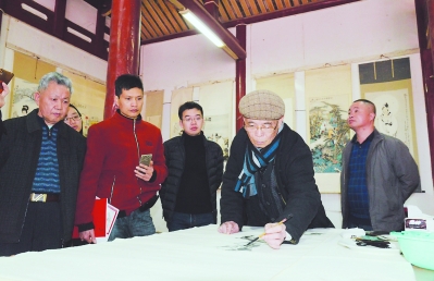 2017年春節期間,包括孫仁英在內的原李耕國畫研究所10位畫家作品展在仙游文廟展出。孫仁英現場作畫,引觀眾圍觀品賞。趙賀民攝