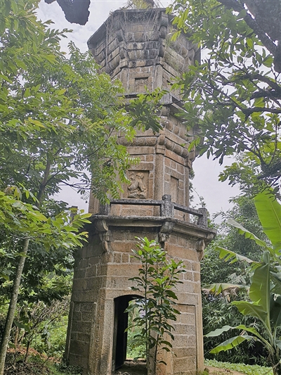 在我縣榜頭鎮(zhèn)昆侖村的后山坡上,至今還保留著一座明代的石塔(如圖),這也是目前我縣境內(nèi)保存較為完好的古代石塔之一。 據(jù)《榜頭鎮(zhèn)志》記載:“槐塔為明崇禎四年(公元1631年)云莊王懋卿、王獻(xiàn)卿、王銓卿兄弟所建”。書中記載,王懋卿三兄弟,自是“三槐王氏”后裔,功名成就之時(shí),遂于故鄉(xiāng)建塔,彰顯祖德,砥礪后人,故名“槐塔”。 日前,記者慕名前來,一睹石塔風(fēng)貌。來到塔下,抬頭可見槐塔一共有四層,為八角形仿木樓閣式,塔身用條石砌成,通高20米,寬12米。塔壁六面刻有浮雕壁畫,上設(shè)平座回廊,護(hù)以欄桿。槐塔設(shè)計(jì)精巧,雕刻精細(xì)。底層南北開門,塔門兩旁鐫刻對(duì)聯(lián)。第二層南北面各飾有魁斗神像,神像兩邊的對(duì)聯(lián)是“鵲走三臺(tái)臨國(guó)族,蟬聯(lián)五色護(hù)魁星”,正中匾文“綱張奎壁”,另一為“紫柏開天”,兩旁塔柱雕有圖案。第三層為南、東北、西北三面開門。塔頂為平臺(tái),塔尖為葫蘆式。 據(jù)了解,槐塔建成至今300多年仍保存完好,民國(guó)十九年(1930年)八月重修,后因塔基崩裂于1986年7月修繕,1997年被仙游縣人民政府列為縣級(jí)文物保護(hù)單位。 |