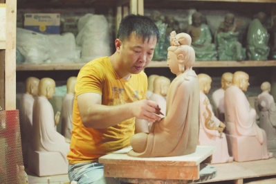 陳萬龍佛像青瓷作品 林愛玲 攝 下個月,陳萬龍的“仙游青瓷”會館即將開館,他最想分享的不是個人得意之作,而是歷時近一年、踏遍仙游各山頭老窯址收集的11噸老瓷片里的故事。2018年3月,仙游青瓷被列入莆田市第六批非物質文化遺產代表性項目名錄,陳萬龍當選該項目非遺傳承人。“不一定老的東西就一定是好的。”他像一個解開了千年不語的仙游陶瓷燒造密碼的“地下工作者”,終于等來了開口說話的機會。 仙游“小孩”韌勁“碰瓷” 今年44歲的陳萬龍早在20年前就已經在仙游榜頭出名了。個子不高的陳萬龍,被人叫作“小孩子”,也因為擁有了一手超越年齡的燒瓷好技術被人記住。1998年,那時候的泥土一噸才200元,他做的杯子茶杯一個就可以賣到100元。陳萬龍知道,如果不是自己那次初生牛犢不怕虎的“出走”,就沒有他那時候的成績。 憑著一腔孤勇,19歲的陳萬龍想從浙江的龍泉青瓷入手,哪家廠子大就往哪家跑,陳萬龍找到了當地的一家國企原料廠,得廠長徐志星傳授手藝,從打雜拉坯學起,漸得手感,3年后他回到仙游,不顧家人反對借錢辦起了瓷器廠。很快,現實給陳萬龍一記教訓,讓他賠了個精光。不甘心失敗的陳萬龍,決定再次前往龍泉市找師傅。彼時,徐志星的兒子徐哲華是一名專業的學院派制陶工藝師父,與陳萬龍一見如故,便無保留地把制作龍泉瓷的釉料配方無償贈予陳萬龍。 多年后,很多人都會問他:“你師從何處?”陳萬龍都會從心底感激龍泉市徐氏父子對自己的知遇之恩。得配方靈感啟發后的陳萬龍便潛心研究燒窯技術。上世紀90年代末,20來歲的陳萬龍制瓷水平得到市場認可,甚至他的產品一度被人全部承包,其作品成為業界的新類。 11噸老瓷片拼出“土龍泉” 或因年少成名,經營著瓷器廠的陳萬龍也曾在仙游紅木市場爆發期中“飄了”,他把多年積蓄一股腦投入到紅木行業里,命運再次反手給出一個教訓,讓陳萬龍再次血本無歸。2013年,沉寂下來的陳萬龍更明確了自己的方向——發揚仙游青瓷文化,用作品走出屬于自己的路。 調整心態后的陳萬龍,不僅在行業中找到自己的位置,他還跳出圈子,放大眼界,找到仙游陶瓷文化在歷史中的位置。近幾年來,他不斷收集資料,奔走田野山間,欣然發現,仙游在宋代就成批生產陶瓷制品,至今已發掘出5大古窯址及數量龐大的古陶瓷片。不僅如此,他還考據發現,仙游青瓷窯系與浙江龍泉窯有著十分密切的關系。陳萬龍認為:“仙游古瓷片中的釉水和器型與龍泉窯瓷器有90%的相似度,仙游有可能是龍泉窯的分窯。” 田野調查堅定了陳萬龍內心的文化自信,促使他在創作中形成個性鮮明的作品特點:發揮莆仙地區人物造型細膩生動的優勢,反復試驗配出最符合龍泉窯釉色配比、裂釉紋工藝,創作出古意十足的人物青瓷作品。陳萬龍尤為擅長燒制大件人物青瓷,還被譽為青瓷德林和尚第一人;不論是梅子青、粉青、竹葉青皆能燒制,所出精品釉色如玉,圓潤流暢,深得專家認可。 2017年,陳萬龍幾乎跑遍了仙游的所有山頭,把各古窯址老瓷片標本收集起來以做研究,累計重達11噸。“不及早采集這些珍貴的標本,就怕以后遲了。”陳萬龍能一眼就辨別出瓷器所屬年代,他說,主要看它的器型和釉水,這也就是古法制瓷的兩大關鍵。相對于利用陶藝機器,陳萬龍堅持所作陶藝品都是純原料、純手工制作,也因此成立仙游土龍泉青瓷研究所,致力于仙游古青瓷工藝的研究和傳承。 百里挑一砸出名氣 “陳萬龍的杯子請不到。”近年來,坊間開始流傳出陳萬龍的作品一杯難求的說法。為探究竟,近日,記者走訪陳萬龍的制陶坊,偌大的工作室地上擺滿了同一款茶盞胎體近百套,相同的人物造型胎器、瓶器等大量地陳列其中……陳萬龍說,這些半成品最終能有10%成功就很不錯了。 一件陶瓷作品要算得上成功,那是相當難的一件事,在經過選泥、拉坯、素燒、上釉、燒窯等20多道工序后,在開窯前一刻都無法斷定作品的成敗。其中施釉和燒成兩個環節最難把握。如厚釉類產品通常要施釉數層,施一層素燒一次,再施釉再素燒,如此反復多次后才能進入正燒,而正燒溫度高達1300攝氏度左右,并得按要求逐步升溫、控溫,既要控制窯內氣溫,還要防止戶外風變對爐火的影響。陳萬龍是個燒瓷“實驗派”,喜歡研究釉水配方,力求仿古達古又推陳出新,這種敢于“賭窯”的個性讓他成為“馭火”高手。 就是在如此高失敗率的環境下,陳萬龍仍堅守百里挑一的品控要求,“壞的寧可砸了也不要將就流入市場”,高標準更考驗燒窯者的心態,也更能煉出一雙選擇藝術品的慧眼。“不一定時間久的就都是好的,趨于完美的青瓷作品在任何時代都會有價值。”陳萬龍的不少作品在央視展播、被廈門博物館等館藏,更有在拍賣行拍出數百萬元的。他依然不急于求成,他認為,能代替他開口說話的作品還不多,仙游瓷器行業還需要火候,但他相信,他和仙游青瓷都會迎來“渾然天成”的一天。 |