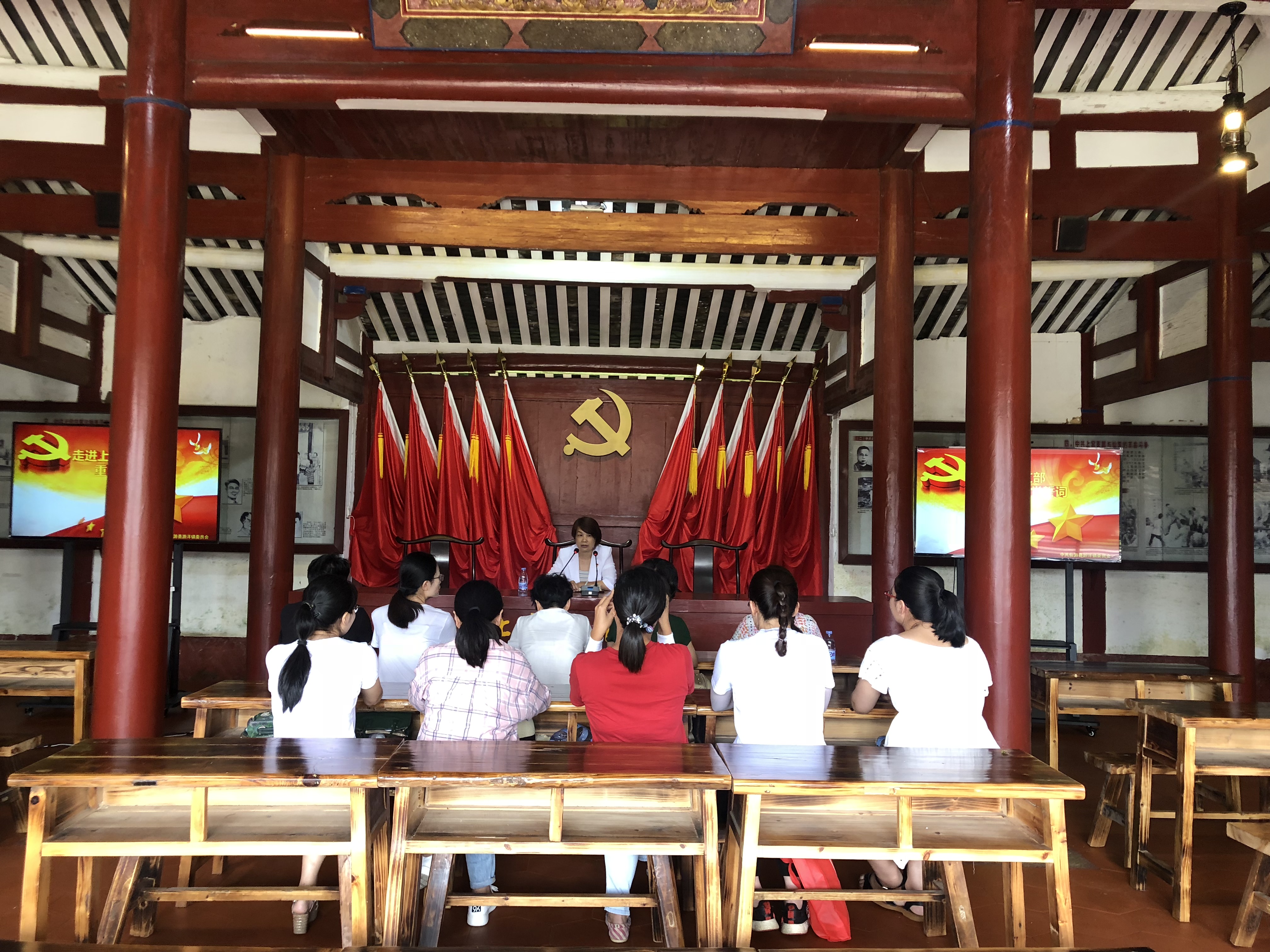 在上宮支部舊址主廣場(chǎng),全體黨員集體宣誓,重溫入黨誓詞,表達(dá)了對(duì)革命先烈的緬懷之情以及對(duì)黨的事業(yè)忠誠(chéng)和熱愛。在現(xiàn)場(chǎng),全體黨員歌唱祖國(guó),獻(xiàn)歌給黨。黃家紅主席以“牢固樹立‘四個(gè)意識(shí)’ 爭(zhēng)當(dāng)新時(shí)代黨員” 為主題給全體黨員上了一堂簡(jiǎn)短又生動(dòng)的黨課,以“站起來、富起來、強(qiáng)起來”九個(gè)字生動(dòng)詮釋我們黨的光榮歷程。