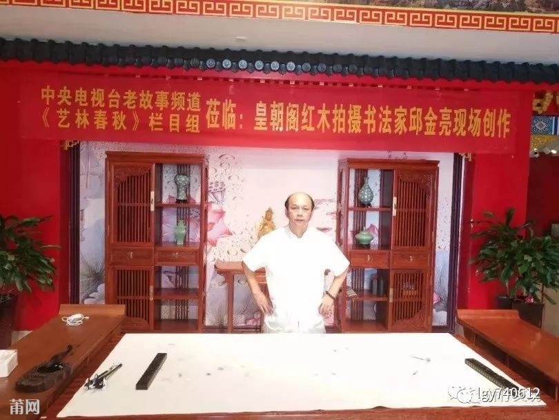 2019年春節前邱老師晉京參加CCTV星光影視園書畫春晚的場景 不信你只要在手機或電腦上百度搜索邱金亮老師的名字,定會跳出幾十篇相關介紹文章及許多書法作品照片。作為學生的我深深的為邱老師在書法藝術道路上所取的輝煌成就而感到驕傲和自豪。 邱老師為了續本人與其深厚的師生情誼,還特意贈送一幅《濟川行》書法作品予我惠存,作為學生的我一定要備加珍惜好好珍藏之。