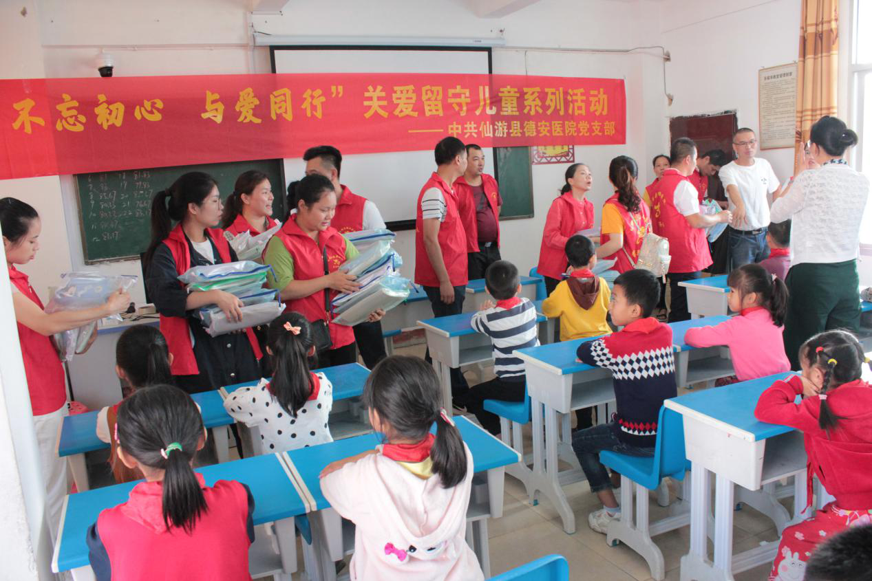 活動中,黨員們走街入戶發放健康宣傳資料,為患精神障礙的貧困戶送去食用油和大米等生活物品,免費為他們進行健康體檢。在鐘山鎮中心小學,黨員志愿者與留守兒童親切交流,并為他們送上學習用品。黨支部書記林順興為鐘山鎮網格員、鄉村醫生及鐘山衛生院工作人員,就判斷精神障礙疾病等內容開展科普講座。