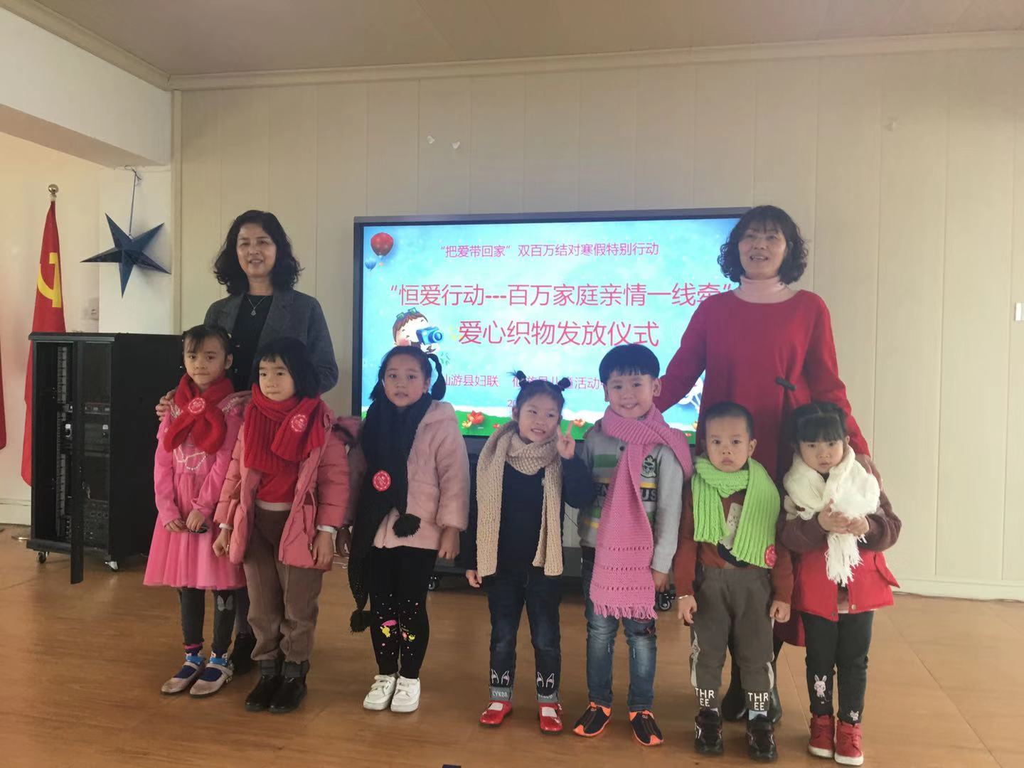 1月7日下午,仙游縣婦聯(lián)在縣兒童活動(dòng)中心開展“把愛帶回家”主題活動(dòng)。 活動(dòng)現(xiàn)場(chǎng),婦聯(lián)工作人員為貧困兒童送去溫暖的圍巾。巾幗志愿者還深入兒童活動(dòng)中心幼兒園各個(gè)班級(jí),以防范交通事故、煙花爆竹和意外傷害等為內(nèi)容為孩子們上了一節(jié)生動(dòng)的寒假安全自護(hù)課。 據(jù)悉,縣婦聯(lián)將進(jìn)一步開展“把愛帶回家”主題活動(dòng),突出“團(tuán)圓”、“幸福”、“愛”等新年特色,通過(guò)開展“把優(yōu)良家風(fēng)帶回家”、“把法治安全帶回家”、“把社會(huì)關(guān)愛帶回家”等活動(dòng),營(yíng)造全社會(huì)關(guān)心關(guān)愛留守兒童的良好氛圍。 |