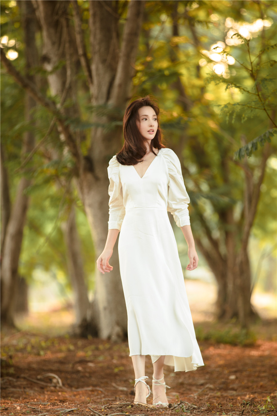 近日,彭小苒一組森林系寫真曝光,一襲白色長裙搭配白色綁帶高跟鞋典雅清新。略顯蓬松的泡泡袖活潑俏皮,展現鎖骨線條的V字型領口使整體風格融入些許成熟元素。舒適自然景觀與溫柔穿搭的碰撞結合,斑駁樹影下的愜意自在,再現柔美畫幅質感,給大家帶來一份專屬于初夏的清爽視覺體驗。