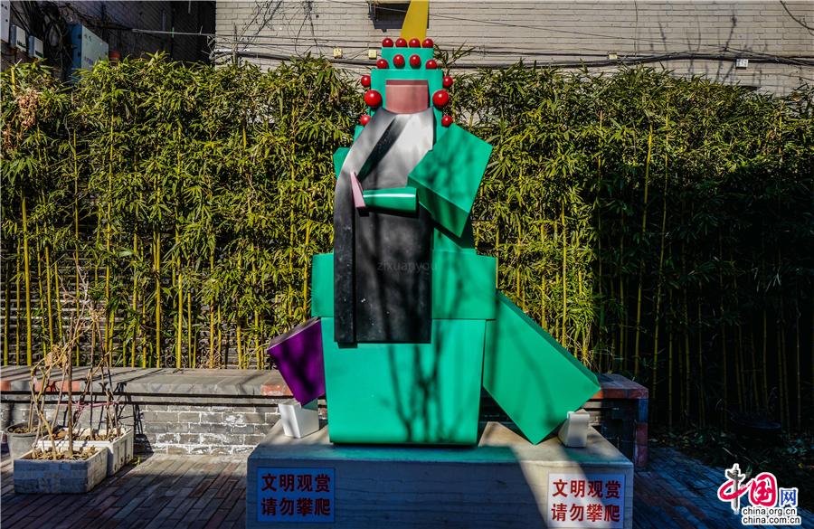 巷口有一家老北京兔兒爺店,店主是“兔兒爺張”第五代傳人張忠強,各種造型的兔兒爺很北京,傳人張先生還傳授技能,只要坐下來靜心學習一兩個小時,在老藝人的指導下,就可親手做出一件屬于自己的兔兒爺作品,一對戀人,認真的在為手上的作品上色,老傳統的文化藝術獲得了青年人的喜愛,并成為愛情信物,帶著特別的情感傳承,說明了傳統文化藝術的魅力所在。