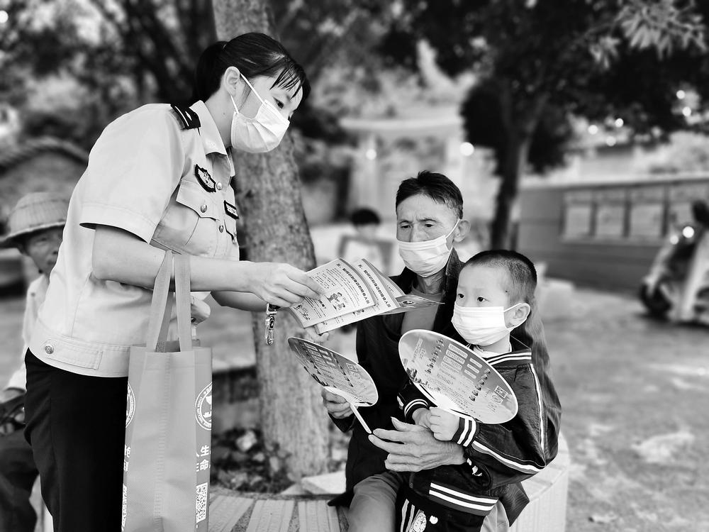今年以來,仙游縣公安局大濟派出所持續推進社會治安防控體系建設,從安全防范入手扎實開展禁毒宣傳。圖為近日,民警進社區派發禁毒宣傳單。