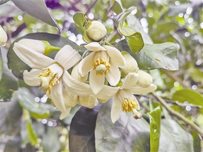 仲春時節,春色正中分,這是人間最好的一段時光之一,天氣不冷也不熱。3月31日,記者在位于度尾鎮帽山村的度尾兄弟家庭農場看到,滿山柚林里,滿眼是剛長出的新綠,萌發著勃勃生機。碗口粗的樹干,傘樣的樹冠,茂密的嫩葉下開滿了串串白色小花,在碧綠的葉子的映襯下,既素凈,又雅致,讓人有著說不出的美好。 春雨綿綿,雨中的柚花香味,更是別有一番韻味。小小的花朵中透著靈氣,它低垂著自己的小腦瓜,欣然接受著上天賜予的這瓊漿玉液般的洗禮。春天的風一吹,站在樹下,柚子花香撲面而來,淡淡的香一股股地徑直往人的鼻孔里鉆,沁人心脾;香得那么動人心弦,攝人心魄,綻放出一個淡雅別致的春天。