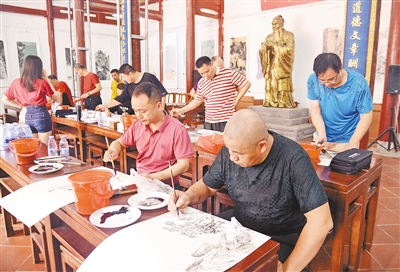 揮毫潑墨 國慶期間,仙游文廟明倫堂里丹青溢彩、翰墨飄香,上百幅精妙的國畫佳作一字排開,吸引了眾多市民駐足觀賞。這是縣委宣傳部、縣總工會(huì)聯(lián)合主辦的禮贊莆田市建市40周年暨慶“國慶”職工中國畫作品展,為市民奉獻(xiàn)了一場精彩的文藝盛宴。 本次展覽時(shí)間為10月1日至7日,前期由仙游縣美術(shù)家協(xié)會(huì)組織發(fā)動(dòng),以中國畫為載體,邀請近百名畫家,共創(chuàng)作展出120余幅中國畫作品。職工書畫家們以手中筆墨,抒發(fā)胸中情懷,深情祝福祖國74周年華誕。 本次活動(dòng)也得到了廣大國畫藝術(shù)家的積極響應(yīng),老中青三代國畫大師匯聚,包括孫仁義、李清達(dá)等老一輩大家,黃玉坤、林仁中等中年藝術(shù)家,以及傅振文、鄭路訊等新生代中堅(jiān)力量,不僅展現(xiàn)了仙游國畫的整體創(chuàng)作實(shí)力,也集中、全面、客觀地體現(xiàn)出當(dāng)代仙游中國畫創(chuàng)作之盛貌。 活動(dòng)中,主辦方還邀請了二十余名國畫家,現(xiàn)在寫生、一展風(fēng)采。各位國畫家們揮毫潑墨,筆走龍蛇,不一會(huì),一幅幅形象生動(dòng)、栩栩如生的佳作便躍然紙上,引得圍觀市民嘖嘖稱贊。 |