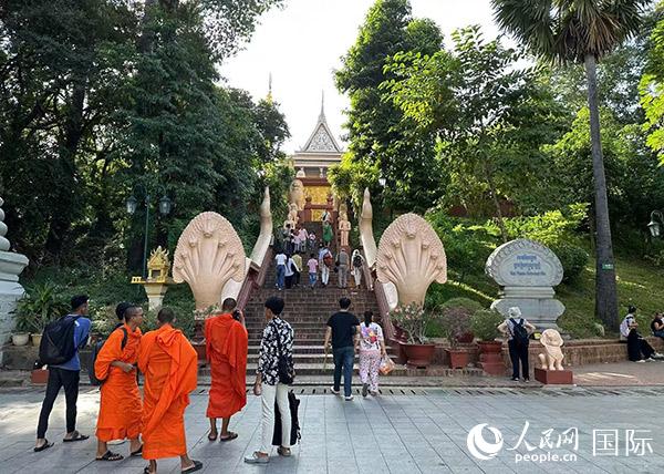 游客在金邊塔山寺游玩。人民網記者 簡承淵攝 報告顯示,今年前10個月,柬埔寨累計接待中國游客691736人次,同比增長52.5%。柬埔寨擁有地理位置優越、文化遺產豐富和基礎設施不斷改善的優勢,成為吸引中國游客前往的目的地,特別是吳哥窟、金邊皇宮和西哈努克省海灘等景點尤為熱門。