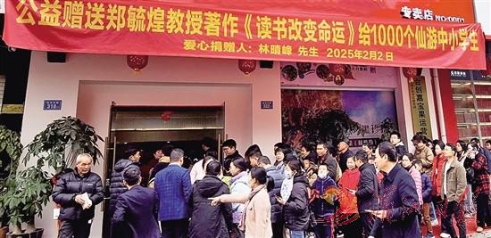 “加油!好好學習。”“加油!努力讀書。”近日,一場充滿愛心與希望的公益贈書活動在仙游百家姓酒旗艦店展開(如圖),鄭毓煌教授每贈送一本書時都向受贈學子重復這兩句話。活動中,仙游一中校友、IT從業者林晴峰向仙游縣1000位中小學生捐贈1000冊《讀書改變命運》。同時,他還分別向仙游縣實驗小學、賴店中心小學、賴店溪埔小學以及仙游縣圖書館分別贈送100冊書。 《讀書改變命運》書籍由仙游一中校友、清華大學教授、知名學者鄭毓煌所著,講述其從仙游農村出發,通過不懈努力考上清華大學,之后到哥倫比亞大學深造,最終成為清華大學博士生導師的成長經歷,分享了俞敏洪、彭凱平、施一公、顏寧等眾多優秀人士通過讀書改變命運的感人故事,闡述讀書對于個人命運有著深遠影響,知識能夠賦予個人能力,讓人超越自身局限,獲取新技能和思維方式,從而改變生活軌跡。全書飽含著對青少年成長的關懷與激勵,旨在幫助學子們從這些經歷中汲取力量,樹立奮斗目標。