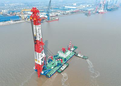 圖為“二航長青”輪駛離啟東海工碼頭。 陳意海攝(人民視覺) 本報南京2月18日電 (記者姚雪青)世界樁架最高、吊樁能力最大、施打樁長最長、抗風浪能力最強的打樁船“二航長青”輪2月17日從江蘇南通啟東啟航,標志著我國水工建設領域又一重器正式入列。 打樁船負責把鋼管打入水底形成樁基,將在大型港口、跨海大橋、海上風電等工程建設中發揮作用?!岸介L青”輪此次駛往通蘇嘉甬高鐵——杭州灣跨海鐵路大橋施工現場。 據了解,該輪于去年1月18日開工建造,總長130.5米、型寬40.8米、型深8.4米、打樁架高150米,樁架主油缸推力5000噸。該輪可打最大樁重700噸、直徑7米的樁基,配備的打樁定位系統可實現深遠海厘米級精度打樁。 該輪還首次在大型工程作業船舶領域應用柴電混合動力的工程船舶直流組網技術,可提高燃油經濟性,降低碳排放。