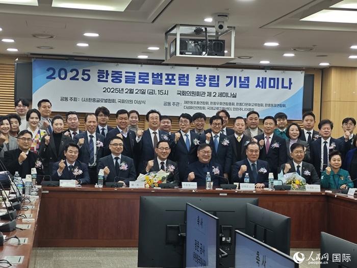 活動現場,中韓嘉賓合影留念。人民網記者 莽九晨攝 方坤致辭表示,中韓是搬不走的近鄰和分不開的合作伙伴。當前中韓關系企穩回升,同時仍面臨不少挑戰。期待韓中全球論壇凝聚雙方智慧和力量,促進中韓關系健康穩定發展。 朱豪英、金太年等致辭表示,韓中友好淵源深厚,各領域交往合作緊密,同時雙方之間也有不少誤解。希望韓中全球論壇創新模式,助力兩國擴大交流,增進理解,加強合作。 韓中全球論壇由韓中全球協會等多家韓國對華友好團體和在韓中國僑團聯合發起,旨在搭建有關團體合作平臺,共同促進中韓交流合作。