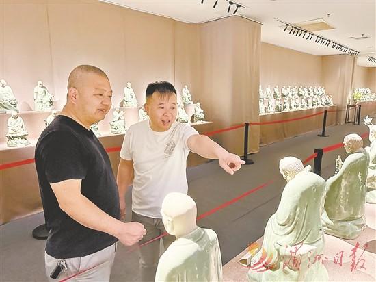 青瓷五百羅漢作品展引關(guān)注。全媒體記者 林羅曉 攝 5月11日,周末,不少游客走進(jìn)仙游三福藝術(shù)館,參觀宋代土龍泉青瓷五百羅漢作品展。500尊青瓷羅漢的造型、表情各不相同,栩栩如生。這是全國目前最全的青瓷五百羅漢,也是規(guī)模最大的青瓷組模作品。 “這是青瓷藝術(shù)領(lǐng)域的一次全新嘗試。”福建省工藝美術(shù)大師、仙游縣土龍泉青瓷研究所負(fù)責(zé)人、青瓷五百羅漢創(chuàng)作者陳萬龍說,他在8年前開始構(gòu)思,找到多位制瓷行家一同設(shè)計(jì)羅漢形象,后又定制了模具。由于數(shù)量較多,需要做到外形各異,且燒制過程講究火候,成品率只有1/6。為此,花了3年多時間才燒制完成這組作品,眼下正在申請吉尼斯世界紀(jì)錄。 青瓷是中國陶瓷燒制工藝的珍品。古時福建一些窯口生產(chǎn)的仿龍泉青瓷,被稱為“土龍泉”?!扒啻勺髌废胍獰瞥晒?,是相當(dāng)難的一件事,經(jīng)過選泥、拉坯、素?zé)?、上釉、燒窯等70多道工序后,在開窯前一刻都無法斷定作品的成敗?!毕捎慰h土龍泉青瓷研究所工作人員陳清華深有體會地說,特別是施釉和燒成兩個環(huán)節(jié)最難把握。 陳萬龍力求仿古又推陳出新,致力福建土龍泉青瓷復(fù)興,潛心研究復(fù)刻土龍泉古瓷,把仙游各古窯址老瓷片標(biāo)本收集起來進(jìn)行研究,累計(jì)11噸重。 “仙游境內(nèi)的土龍泉窯系,目前公認(rèn)最好的窯口是大濟(jì)鎮(zhèn)溪口窯,所以復(fù)制工作以那里的古瓷片為準(zhǔn)?!标惾f龍說,他采用新技術(shù)、新工藝和新設(shè)備,不斷研制、分析、化驗(yàn)、比對、鑒定,終于將燒制出的青瓷與古瓷片的成分吻合度提高至90%以上。 與青瓷打了30多年“交道”的陳萬龍,讓青瓷煥發(fā)出新光彩。仙游青瓷產(chǎn)品打入浙江省龍泉市和江西省景德鎮(zhèn)市的市場,銷往全國其他地方,還出口至泰國等東南亞國家。仙游青瓷傳統(tǒng)燒制技藝入選第七批省級非物質(zhì)文化遺產(chǎn)代表性項(xiàng)目名錄。陳萬龍成為該項(xiàng)目省級非遺傳承人,其多件青瓷作品獲故宮博物院、中國工藝美術(shù)館、中國非物質(zhì)文化遺產(chǎn)館、福建省博物館等館藏。 青瓷茶具、耳環(huán)、戒指、項(xiàng)鏈、手串……如今,仙游青瓷不局限于人物塑像,而是打造了豐富多樣的文創(chuàng)產(chǎn)品,逐步實(shí)現(xiàn)個性化定制,打開全新的市場出路。 5月10日,陳萬龍帶著80件青瓷精品走進(jìn)江蘇省常州市,并將陸續(xù)在蘇州、上海開辦青瓷個展。下一步,他還將創(chuàng)辦青瓷博物館,讓仙游青瓷技藝傳播得更遠(yuǎn)。 新聞鏈接 仙游縣有著豐富的瓷土礦資源,青瓷盛于宋代。時至今日,仙游縣發(fā)現(xiàn)了不少古窯址,包括大濟(jì)鎮(zhèn)溪口窯、游洋鎮(zhèn)梧椿窯、賴店鎮(zhèn)古洋窯,以及度尾鎮(zhèn)潭邊窯和云居破碗窯等。據(jù)載,仙游嶺南窯等生產(chǎn)的青瓷,被列為中國“青瓷珍品”。 1949年后,仙游蓋尾、度尾的陶瓷生產(chǎn)規(guī)模擴(kuò)大,生產(chǎn)水缸、缽頭、甕等陶瓷器具。20世紀(jì)70年代后,莆田、仙游陶瓷廠開始生產(chǎn)用于出口的陶瓷產(chǎn)品。近20年來,隨著文化產(chǎn)業(yè)進(jìn)一步發(fā)展,莆田陶瓷業(yè)出現(xiàn)了不少藝術(shù)精品,并涌現(xiàn)出李國章、吳文恭等優(yōu)秀的陶瓷藝術(shù)家。 |