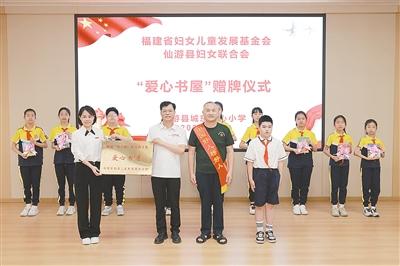 贈牌 近日,我縣城東中心小學舉行愛心書屋揭牌暨雷鋒像揭幕儀式。省婦女兒童發展基金會副理事長、“中國好人”游文晃等參加。 活動中,福建省婦女兒童發展基金會為該校捐贈愛心圖書1321本。游文晃向學校捐贈冷寬將軍題字《愛在天地間》以及油畫《長城》《雷鋒》,并與孩子們分享自己的公益初心,勉勵他們好好學習,做社會的棟梁之才。 據了解,縣城東中心小學現有230平方米的圖書館,藏書65135冊,每周定期開放兩次。學校常態化開展讀書分享會、閱讀競賽等特色活動,構建了完善的閱讀服務體系。此次贈書活動,精準匹配文學素養提升、科學視野拓展、心理健康支持三重維度,進一步打造兼具教育功能與人文關懷的閱讀生態。 游文晃是“中國好人榜”好人。從部隊退役后,幾十年來,他熱心投身公益事業,留下無數學雷鋒做好事的感人故事。活動中,游文晃等人一同為該校設在雷鋒文化廣場上的雷鋒像揭幕。游文晃還向該校師生贈送雷鋒故事的畫集。