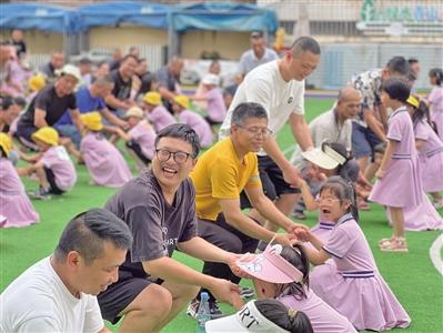 舉高高 6月13日,鯉南幼兒園的小朋友們“以愛之名,高調(diào)炫父”,他們帶著自家爸爸上演了一場溫馨有愛的親子秀,并用溫暖的擁抱和鮮艷的“小紅花”,向爸爸們表達最純真的愛意。 活動在一系列趣味橫生的親子游戲中拉開帷幕。爸爸們將孩子高高舉過肩頭,小家伙們張開雙臂,仿佛真的要飛向藍天;在“小腳丫夾娃娃”環(huán)節(jié),父子倆配合默契,用腳丫傳遞著毛絨玩具;“合力運小球”比賽中,爸爸和孩子額頭相抵,小心翼翼地把球護送到終點……每個游戲環(huán)節(jié)都充滿歡聲笑語,爸爸們張開堅實的臂膀,穩(wěn)穩(wěn)接住孩子們送來的每一個“驚喜”。此起彼伏的加油聲與歡笑聲交織,爸爸們奮力拼搏的身影與孩子們燦爛的笑顏,共同繪就了一幅溫馨動人的畫面。 活動中,孩子們還和爸爸一起動手制作精美的領(lǐng)帶等手工藝品,作為送給爸爸的特別禮物。游戲環(huán)節(jié)結(jié)束后,孩子們更是取出精心準(zhǔn)備的“小紅花”,貼在爸爸的額前。“爸爸、爸爸、爸爸……”現(xiàn)場,一聲聲稚嫩的呼喊,一個個溫暖的擁抱,讓硬漢爸爸們都變得柔情。 |