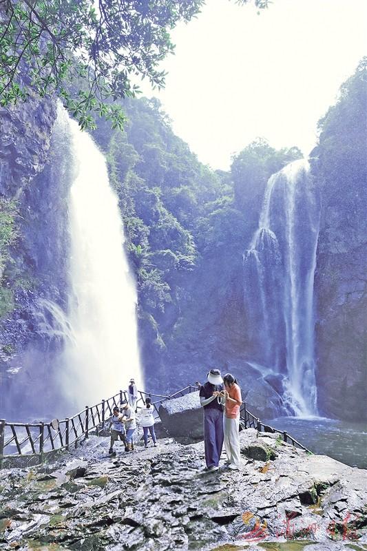游客在九鯉飛瀑前拍照。 鐘山鎮深入落實仙游縣“五千五好”工作部署,立足特色文旅資源,精心布局全域旅游,鋪展和美共富新圖景。 盛夏,地處仙游縣鐘山鎮的九鯉湖景區,九漈形態各異的瀑布,水勢浩大,令人嘆為觀止。這里山清水秀、林木蔥郁、涼爽宜人,成為一方避暑勝地。 仙游縣委書記吳海端在北部山區開展文旅專題調研時指出,全力打造“文旅融合發展示范縣”,全面提升旅游品質,持續深化“文旅+”融合,推動文化、旅游、產業深度結合,實現“文化賦能旅游,旅游帶動產業”。 鐘山鎮自然景觀豐厚,紅色文化豐富,民俗源遠流長。該鎮深入落實仙游縣“五千五好”工作部署,立足特色文旅資源,孵化生成集“吃住行游購娛”于一體的農文旅融合產業業態,將山水之美轉化為富民資源,奏響青山綠水與強村富民的交響樂。 打造智慧旅游景區 在九鯉湖景區,湖面波光粼粼,瀑布飛流直下,沿途奇石林立,游客徜徉其中,感受山水詩畫美景。明代地理學家、旅行家、文學家徐霞客盛贊的“峻壁環鎖,瀑流交映,集奇撮勝,唯此為最”瀑布點,更是人氣爆棚。 九鯉湖是國家4A級旅游景區,以九級瀑布和峽谷景觀聞名,負氧離子含量高,是養生度假的好去處。記者了解到,自2000年12月起,仙游縣對九鯉湖實施全面封山育林,劃定景區生態林約1333公頃,先后開展“大造闊葉樹、綠化全景區”“全民植樹總動員”等造林綠化活動,種植樹木約50萬株,建設“生態景觀示范林”500畝。通過護綠植綠,景區森林覆蓋率由70%提高到96%,生態林面積達1167.25公頃。此外,水源水質、空氣質量、噪音等14項生態指標均達國家一類標準。 近期,九鯉湖一批重點文旅項目累計完成投資1850萬元,為九鯉湖與麥斜巖景區提檔升級注入澎湃動能。其中,九鯉湖卓泉游客集散中心項目聚焦服務配套提升,新建4座生態公廁,鋪設改造供水管網5公里,補植綠化苗木100株。游客服務中心廣場及部分步游道升級改造完成,四季花圃步道蜿蜒提升,禪寺廣場修繕一新。今年景區還推出智慧購票、智慧停車、智能導覽等新旅游體驗項目,讓游客智慧暢游。 九鯉湖管委會主任蔡啟錦介紹,景區投資近600萬元建成智慧景區系統(一期)項目。游客從手機上進入“智慧導覽”小程序,就能獲取景區攻略、景區導覽、特色推薦、門票交通等旅游信息,“吃、住、游、購”一鍵辦理。不但可以掃碼通行,還能個性化規劃路線,盡覽沿途山水美景。 據初步統計,今年以來,九鯉湖景區接待游客超31萬人次,同比增長超16%,預計實現旅游收入破千萬元,增幅超14%。 仙游縣文旅局局長蔡俊賓表示,九鯉湖景區作為仙游首個四鉆級智慧景區,以智能化、信息化的模式,為游客提供了更加便捷、豐富的旅游體驗,有力提升了文旅滿意度,為全縣景區運營管理提供革新范本。 實施片區組團開發 從九鯉湖景區北上來到麥斜巖,只見山上怪洞藏幽、奇石成趣,云居湖水庫景色迷人,眾多游客在此登山、露營。 鐘山鎮素有“山區小平原”之稱,除九鯉湖和麥斜巖景區外,全域還分布工農紅軍108團革命遺址、中共福建省委舊址、林劉地下交通站等紅色文化遺存,擁有九仙、陳靖姑等九大文化,是一個以自然景觀為主,人文景觀為輔的綜合性旅游重鎮。 該鎮深度融入國家文旅融合發展示范區創建,以九鯉湖、麥斜巖景區為核心,聯合九鯉湖管委會對湖亭村、卓泉村、麥斜村、朗橋村、梅洋村、香山村實施片區組團開發,打造“九鯉片區”。 湖亭村是九鯉湖風景名勝所在地,推出游賞、遠眺、觀瀑、探險文旅項目,打造集康養、運動休閑、國學研修于一體的旅游度假區。 與九鯉湖景區相距5公里的卓泉村擁有卓泉巖,翠竹叢林,怪石峭立,形態萬千。 麥斜巖主峰海拔1006.5米,常有云霧繚繞峰頂,因而也稱“云居山”。這里不僅風景秀麗,而且是中國工農紅軍108團的革命誕生地。 梅洋村入選省級第三批鄉村振興示范村創建名單,大力發展草編工藝、民宿產業和庭院經濟,為周邊景區發展配套,助力旅游品質提升。 朗橋村地處云居山南麓,位于九鯉湖與麥斜巖兩大景區之間,借勢發展鄉村旅游。打造集中連片的鐘山稻米展示區,形成風吹麥浪的稻海景觀。 香山村把香山小學改造成研學營地,配備公寓、營房餐廳、多功能廳、辦公區、醫務室、農耕文化館和紅色文化館等,聚焦勞動教育、農業科普、自然教育、鄉村美食、創意工坊等課程,打造仙游首個“耕讀”特色的勞動教育基地與農業觀光休閑景區。 精準定位一村一品,精心布局全域旅游,鐘山鎮拉動文旅產業強勁引擎。 景村融合提升品質 漫步鐘山鎮,一個個小庭院別具一格,村民“就地取材”利用自家磨盤、陶器、草編工藝品等作為裝飾,青磚砌筑、青瓦鋪貼,扮靚房前屋后的閑置空地。 “村子干凈漂亮了,游客更愿意來,我們住著也舒心!”村民樸實話語道出了環境提升帶來的幸福感與獲得感。 發展文旅,生態是根基。鐘山鎮積極探索生態保護與文旅發展的雙贏模式,在強力推進鄉村人居環境整治同時,加快美麗宜居鄉村建設,創新開展鄉村民宿集群式改造項目,將花卉種植、草編工藝等業態“植入”庭院經濟,營造“一院一景、一戶一韻”的特色風格,探索出景村融合的鄉村振興新路。 目前,鐘山鎮已建設美麗庭院36戶,美麗微景觀28處,美麗小公園5個,美麗田園3片,美麗鄉村休閑旅游點3處,人居環境整治提升示范街1條,提