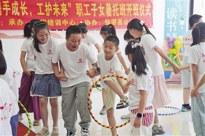 歡笑不斷 為進一步深化構建工會服務職工體系,幫助解決職工子女暑期“看護難”問題,7月4日上午,由縣總工會主辦的“攜手成長 工愛未來”職工子女暑托班正式開班。 開班儀式上,縣總工會與德優培訓中心簽訂了委托協議,隨后德優培訓中心與家長代表簽訂了托管協議,縣總工會為暑托班授牌。 儀式結束后,精心準備的趣味活動隨即展開。孩子們在《快樂連環套》中穿梭接力,體驗協作樂趣;《袋鼠跳一跳》環節,大家套上布袋化身小袋鼠,蹦跳前行,歡笑不斷,現場加油聲、喝彩聲此起彼伏,迅速點燃了現場歡樂的氛圍。 據了解,此次公益暑托班,服務對象為機關、企事業單位職工子女,為期一個月,在此期間不收取任何費用,并依托社區鄰里中心和企事業單位內部場所,開設10個暑托班,分別為洪橋社區1個班、南橋社區1個班、木蘭社區1個班、壩壟社區2個班、國網仙游縣供電公司賴店供電所1個班、新就業形態勞動者服務中心1個班、中國移動仙游分公司新大樓1個班、縣公安局1個班,教育局1個班。 暑托班每天服務時間7:50至18:20。每班配備輔導老師1-2名,志愿者3名,共吸引全縣332名職工子女以及新就業形態勞動者子女參加。 值得一提的是,此次暑托班堅持公益屬性,融合“托管+教育”服務,除了基本看管服務以及作業輔導,還設置心理關懷、戶外活動、兒童發展等豐富多彩的課程。通過“托、管、學”的方式,陪伴職工子女“開心一夏”,滿足職工家長及子女多樣化的學習需求,讓職工子女度過一個安全、有序、快樂的假期。 |