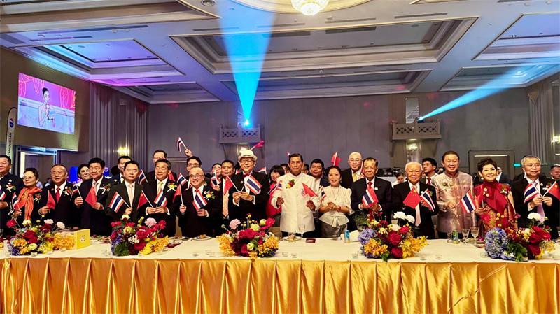 中泰建交50周年友好大會現場。丁溢攝 “五十年來,中泰兩國始終相互尊重、平等相待、互幫互助,在國際舞臺上攜手共進,為地區和世界的和平與發展作出積極貢獻。”功·塔帕朗西深情回顧了中泰兩國自建交以來,在政治、經濟、文化等領域的深度合作與交流,并且強調中泰友誼是兩國人民共同培育的碩果,更是值得倍加珍惜和傳承的寶貴財富。 袁敏道表示中泰兩國是好鄰居、好親戚、好伙伴,人民友好源遠流長。自1975年正式建立外交關系以來,兩國始終堅持相互尊重、平等相待、真誠互信、守望相助,共同書寫了半個世紀的友好合作篇章。特別是進入新時代,兩國政治互信不斷深化,務實合作動力強勁,人文交流日益密切,“中泰一家親”的深情厚誼歷久彌新、深入人心,成為國家間和睦相處、共同發展的典范。 萬諾表示在過去的五十年里,中國政府與泰國政府之間的外交關系,以及中國人民與泰國人民之間的關系,被全世界公認為一種密切的關系,親密和睦,團結一致,始終建立在彼此真誠的基礎之上。“站在新的歷史起點上,中泰兩國將以‘金色友誼’五十年為契機,繼續秉持睦鄰友好的傳統,深化各領域務實合作,加強人文交流互鑒,攜手構建更為緊密、可持續的中泰命運共同體。” 萬諾表示,相信在雙方的共同努力下,中泰友誼之樹必將更加枝繁葉茂,兩國合作之路也將越走越寬廣。 吳志武表示,建交50年來,中泰關系始終健康穩定發展,友好合作成果豐碩,為兩國人民帶來實實在在的好處。愿與中泰各界人士繼續攜手合作,促進民心相通,開啟中泰關系下一個“金色50年”。