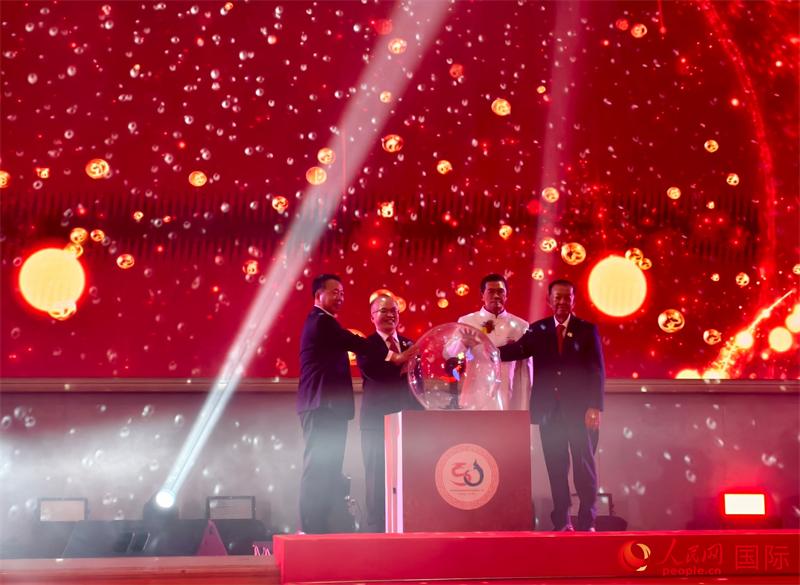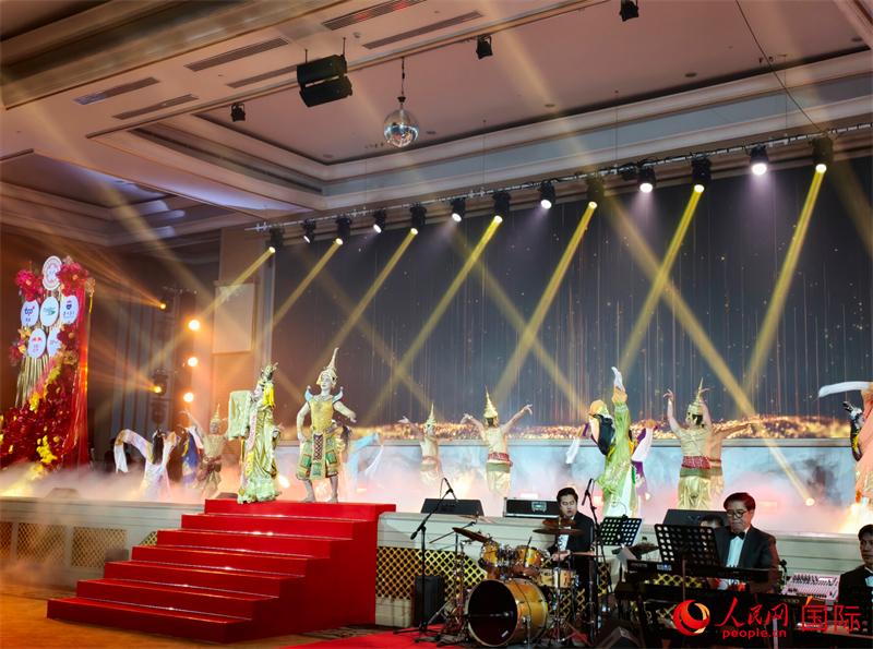 中泰嘉賓慶祝中泰建交“金色50年”。人民網記者 簡承淵攝 當天,與會500多名中泰各界友好人士參觀了“中泰建交50周年”歷史圖片展,欣賞了精彩的文藝演出,共同祝愿中泰兩國國泰民安,友誼萬古長青。