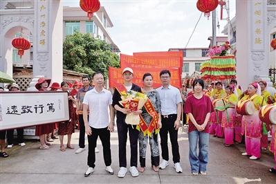合影 8月2日上午,度尾鎮礪山村鑼鼓喧天、鞭炮齊鳴,沉浸在一派喜悅的氛圍中。這是鎮、村兩級對該村學子郭舒佳考取北京大學的慶祝。 “體育+文化”成績雙優的郭舒佳,通過高水平特招被北京大學錄取,成為福建唯一入圍北京大學2025年高水平運動隊的運動員,也是莆田首位通過田徑特長考入北京大學的學子。 度尾鎮、礪山村組織送喜報隊伍,帶著“篤行致遠”書裱和紅綢帶,一路經過礪山村村部、村小、南潮宮、村祠堂,前往郭舒佳家中道賀。隨后,度尾鎮相關負責人為郭舒佳送上由天材集團和度尾鎮獎教助學協會共同贈送的木雕工藝品——麒麟,勉勵她在新的起點上,刻苦求學,追逐夢想,創造輝煌的未來。 郭舒佳出生于2006年,是一名標準的“05后”,7歲后進入度尾中心小學學習,五年級時,她在縣田徑賽中被教練發掘,后進入莆田擢英中學接受系統訓練。2024年,她在體育測試前一周遭遇大腿拉傷,考試失利。在家人的支持下,她回到擢英中學復讀,并在教練翁永鋒的指導下進行高強度訓練。為提升成績,她堅持凌晨5點晨跑、嚴格控制飲食,最終克服體重障礙,成功通過北京大學高水平運動隊選拔。 |