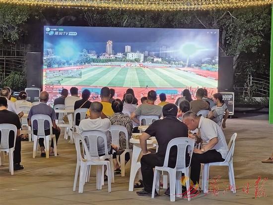 市民在“消費集市”上邊品小吃邊看球賽,感受城市煙火氣。鄭文潔 攝