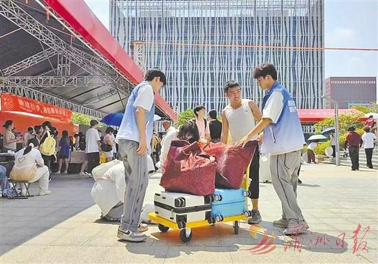 “歡迎新同學(xué)!”9月13日至14日,湄職院2025級新生報(bào)到。來自全國各地的5500余名新生懷著對大學(xué)生活的憧憬與期待,匯聚媽祖故鄉(xiāng)莆田,開啟求學(xué)新征程。 校園內(nèi),湄職院各系志愿者忙碌的身影成為一道道亮麗風(fēng)景線。他們協(xié)助新生搬運(yùn)行李(如圖),在報(bào)到點(diǎn)與宿舍樓之間往返穿梭;在咨詢點(diǎn)為新生及家長指引路線,詳細(xì)介紹校園設(shè)施和專業(yè)情況;為新生及家長發(fā)放礦泉水。天氣炎熱,盡管汗水浸濕衣衫,師生志愿者仍以真誠的笑容和周到的服務(wù)迎接每一位新生,讓新生們切身感受到校園的溫暖與活力。 學(xué)院在校門口和學(xué)生宿舍區(qū)廣場分設(shè)兩個(gè)報(bào)到點(diǎn)。校門口報(bào)到點(diǎn)不僅安排志愿者協(xié)助搬運(yùn)行李,還提供免費(fèi)校園通勤車接送服務(wù),確保新生和家長可便捷抵達(dá)各系院報(bào)到位置。許多家長進(jìn)校門后便駐足于“學(xué)為成人”雕塑、圖書館等地標(biāo)前拍照留念,紛紛贊嘆:“這大學(xué),太漂亮了!” 迎新期間,學(xué)院在關(guān)鍵點(diǎn)位設(shè)置了“我為同學(xué)辦實(shí)事”“新生醫(yī)保咨詢處”“資助政策綠色通道咨詢點(diǎn)”“黨員先鋒崗”等服務(wù)臺。志愿者如校園“活地圖”一般,為新生詳細(xì)介紹一卡通使用、軍訓(xùn)注意事項(xiàng)、食堂與超市分布、反詐常識等學(xué)習(xí)生活信息,幫助新生快速熟悉環(huán)境、完成注冊入住。各系院教師和輔導(dǎo)員也在現(xiàn)場與新生交流。 迎新活動(dòng)中,學(xué)院團(tuán)委共組織55名學(xué)生志愿者,分布于莆田火車站、涵江火車站及校內(nèi)各服務(wù)站;安全保衛(wèi)處派出60名學(xué)生志愿者、33名保安及14名“湄園義警”,共同維護(hù)校園交通秩序,全程為新生入學(xué)保駕護(hù)航。志愿者連續(xù)兩日早出晚歸,以熱情服務(wù)緩解新生和家長的旅途疲憊。許多家長對志愿者的熱心幫助和細(xì)致引導(dǎo)給予好評。 |