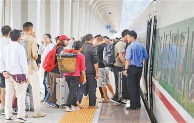 9月20日,旅客在云南普洱站乘車。 記者從中國鐵路昆明局集團有限公司獲悉:中老鐵路開通運營以來,截至9月19日,全線累計開行貨物列車突破6萬列,貨運量超6760萬噸,其中跨境貨物運輸突破1500萬噸;截至9月20日,中老鐵路開行旅客列車超8萬列,發送旅客超5900萬人次。 以上圖片均為新華社記者邢廣利攝