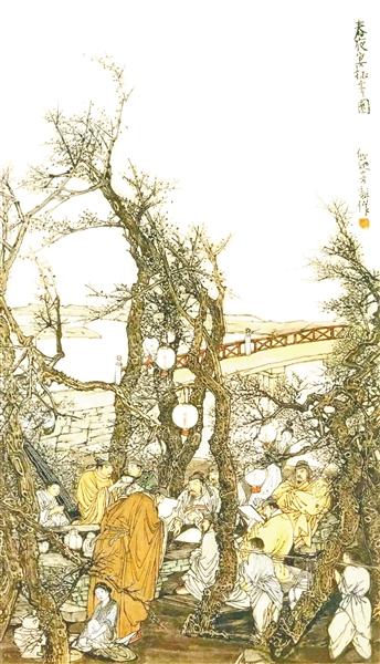 《春夜宴桃李園》 木蘭溪奔流不息,孕育仙游燦爛文明。度尾鎮中岳村,曾走出一位與齊白石并稱“北齊南李”的 畫壇巨匠——李耕。這位集文人畫、職業畫與民間畫特質于一身的藝術大師,用一生筆墨為仙游國畫藝術注入靈魂,更以“李耕畫派”的薪火傳承,在中國畫史上寫下濃墨重彩的篇章—— 今年是李耕誕辰140周年,由縣委宣傳部、縣文旅局主辦,福建博物院、仙游縣博物館、仙游李耕國畫藝術研究院聯合承辦的“一笑娑婆自在天——李耕誕辰140周年紀念展”10月24日在福建博物院啟幕,并將持續至2026年1月3日。展覽中,李耕的《達摩渡江圖》《皆大歡喜圖軸》《東坡笠屐圖軸》《賣炭翁圖軸》等70余件(套)經典佳作悉數亮相,透過這些珍貴的佳作,讓我們共同回望一代大師深厚的藝術造詣與薪火傳承。 1 鄉野筑基 畫壇崛起的傳奇人生 1885年,李耕生于仙游縣度尾鎮一個貧寒的民間繪畫世家,原名李實堅,字硯農,號一琴道人。祖父李泰系與父親李墀的壁畫技藝,是他最早的藝術啟蒙。七歲時,他便能以木炭描摹莆仙戲舞臺人物,筆觸間已見靈性。童年的他隨父奔波于鄉野寺廟,繪制丹青繡像與壁畫,那些穿梭于梁柱間的線條,早已融入他的血脈。 將中國古代典籍的傳統故事轉換為藝術形象,是李耕嘗試繪畫藝術的根基,當地秀才邱明奎、張立夫賞識其才華,授以古典文學與書法,讓他得以在筆墨之外,涵養詩文底蘊。他師法上官周、黃慎等先賢,更遠溯顧愷之、吳道子的藝術精髓,主張“效先賢、嚴法度、堅基礎、師造化、脫窠臼、創新意”,在傳統沃土中汲取養分。 1925年,李耕的《彌勒佛》在東南五省畫展中摘得桂冠,同年他與李霞、陳子奮等創辦福建現代首個藝術團體——龍珠畫社,為閩派藝術播撒火種。1928年中法繪畫聯展上,《東坡笠履圖》《秋雨歸帆》再度奪魁,徐悲鴻在《申報》盛贊:“有以奇拙勝者,首推李君耕,揮毫恣肆,可以追蹤癭瓢,其才則中原所無。”這份贊譽,成為他躋身全國畫壇的重要標志。 新中國成立后,李耕迎來藝術生涯的新高峰。1959年,省政府批準成立“李耕國畫研究所”,他親任導師,培育出蔣金讀、周秀廷等一批名家。1960年,他為人民大會堂國賓廳創作巨屏《松青鶴白東方紅》,筆墨間的雄渾氣象享譽京城。直至 1964年辭世,他始終以筆為刃、以畫為心,將 320幅珍藏作品悉數捐獻給國家,踐行著“畫為人民”的誓言。 2 熔古鑄今 獨樹一幟的繪畫特質 李耕的繪畫藝術,恰似木蘭溪水般兼具靈動與厚重,在題材、筆墨與風格上形成鮮明特色。他擅長古典人物、山水花鳥,兼通金石雕塑,更以詩書畫印的全面修養,成就“國之瑰寶、畫壇之光”的盛譽。 在題材選擇上,李耕始終扎根文化土壤與時代現實。他筆下的仙佛高士如《達摩》《麻姑獻壽》,汲取仙游寺廟壁畫與民俗養分,鮮活靈動;特殊年代里,他以《鐘馗圖》題詩“豹目虎須君莫厭,予今人面更猙獰”,辛辣諷刺時政;用《難民圖》寄托“中原風景不摧殘”的憂思,將藝術與家國命運緊密相連,蘊愛國情懷,這種題材的廣度與深度,讓他的作品兼具審美價值與思想力量。 此外,李耕的《上古神話》《蘇武牧羊》等作品也取材于中國傳統故事。通過這些主題創作,李耕將東方歷史畫敘事傳統與士人精神傳統對接,構建起兼具現代國家意識與傳統倫理價值的表達范式。 在筆墨技法上,李耕達到了“雄健恣肆”與“精妙傳神”的統一。他兼具黃慎的縱逸與吳道子的剛勁,寥寥數筆便能勾勒人物神韻。《東坡笠履圖》中,蘇軾的蓑衣紋理以干筆皴擦,笠帽輪廓用濕墨暈染,干濕濃淡間盡顯人物風骨,將文人畫的雅致與民間畫的質樸完美融合。 李耕善用夸張變形凸顯人物性格,彌勒佛的大腹便便、東方朔的詼諧靈動,皆在比例重構中更顯神韻。他的構圖大膽多變,《十八學士登瀛洲》以錯落有致的人物排布營造空間層次,背景山水則簡筆點染,主次分明間盡顯章法之妙。這種“形神兼備、意趣相生”的創作理念,成為其藝術的鮮明標識。 3 德藝雙馨 光照后世的精神品格 李耕的偉大,不僅在于畫藝精湛,更在于其“畫品即人品”的精神堅守。這位從鄉野走出的大師,始終保持著淳厚質樸的本性,更以強烈的正義感與家國情懷,詮釋著藝術家的擔當。 李耕的清高品格在處世中盡顯。國民黨旅長求畫時,他繪彌勒佛旁孩童戲錢,題詩“皆大歡喜總是錢,莫將錢眼打秋千”,以辛辣筆觸諷刺權貴。而對普通百姓,他卻常??犊洰嫞踔翞樨毢畬W子免費授課??箲饡r期,他接連創作《戚繼光掃倭寇》《花木蘭》等作品,以藝術振奮民心;新中國成立后,他又揮毫繪制《東圳水庫》,謳歌人民改造自然的壯舉,用筆墨書寫時代變遷。 李耕的精神更體現在對藝術傳承的執著。他深知“獨木不成林”,1959年創立國畫研究所后,將畢生技法傾囊相授。弟子周秀廷曾回憶道,先生授課時必講“畫要見心,心要見善”,要求弟子既要練筆墨功夫,更要修品德修為。這種“傳藝先傳德”的教育理念,讓李耕畫派不僅延續著技法血脈,更傳承著精神基因。他生前常說:“藝術當為天地立心,為生民立命”,這份信念貫穿其一生,也成為后世敬仰的精神標桿。 4 尋根立派 仙游畫派的薪火綿延 仙游畫派自明代李在、吳彬開宗,經近代李霞、李耕、黃羲等宗師發揚,形成獨具閩中特色的藝術流派,成為中國畫壇重要的地域符號。其藝術特點鮮明而厚重,技法